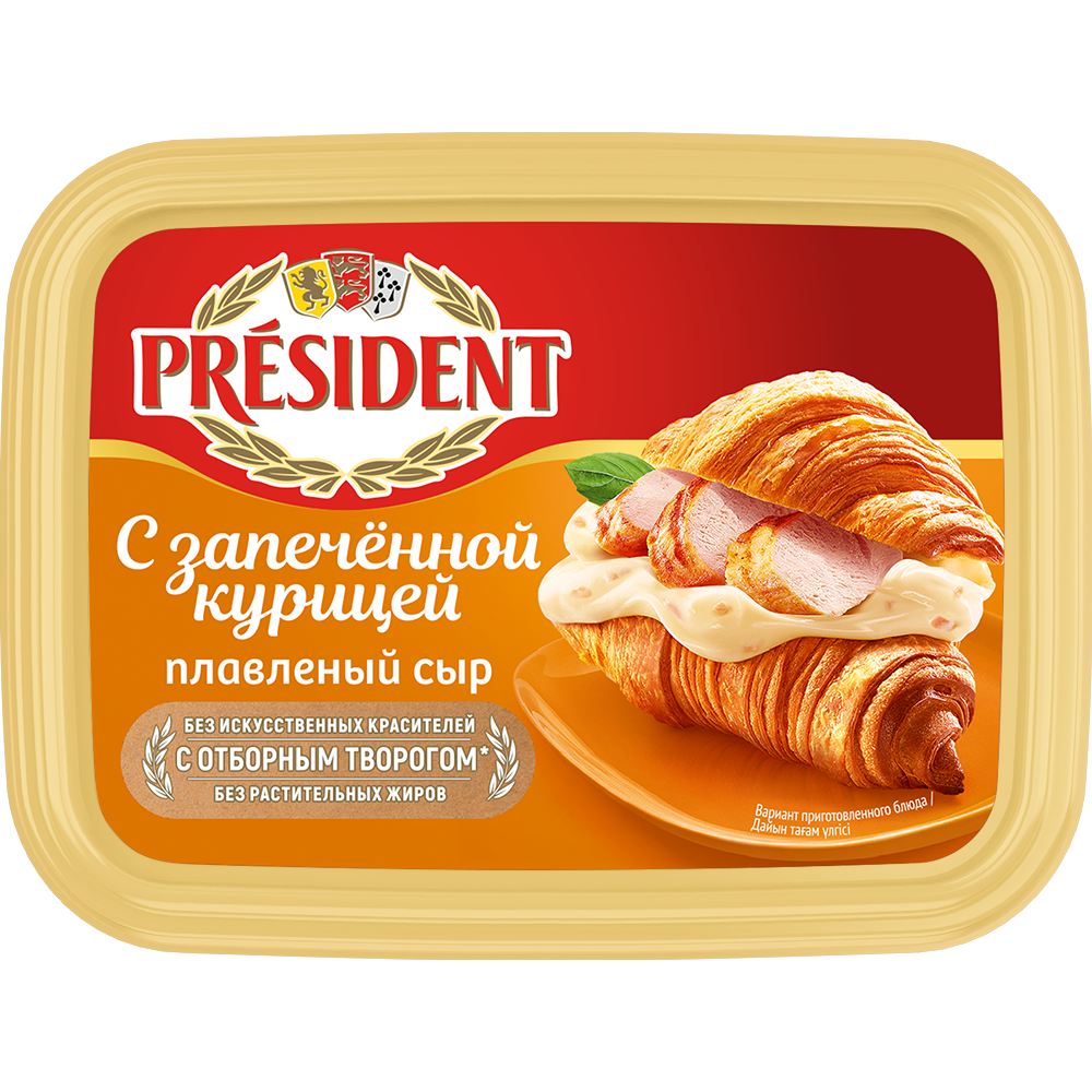 Сыр содержит уплотнитель хлорид кальция, вода питьевая, масло сливочное, молоко сухое обезжиренное, творог, филе грудки запеченное филе куриное, вода питьевая, соль, загустители Е1442, Е407а, Е410, Е412 и Е415, регуляторы кислотности лимонная кислота, Е450 и Е451, антиокислитель изоаскорбат натрия, усилители вкуса и аромата Е621, Е627 и Е631, чеснок сушеный, экстракты специй, фиксатор окраски Е250, краситель красный рисовый, загустители Е1422 и Е407, эмульгаторы Е450, Е451 и Е339, сыворотка молочная сухая, ароматизатор, регулятор кислотности лимонная кислота, ароматизатор усилители вкуса и аромата Е621, Е627 и Е631, стабилизатор Е415.