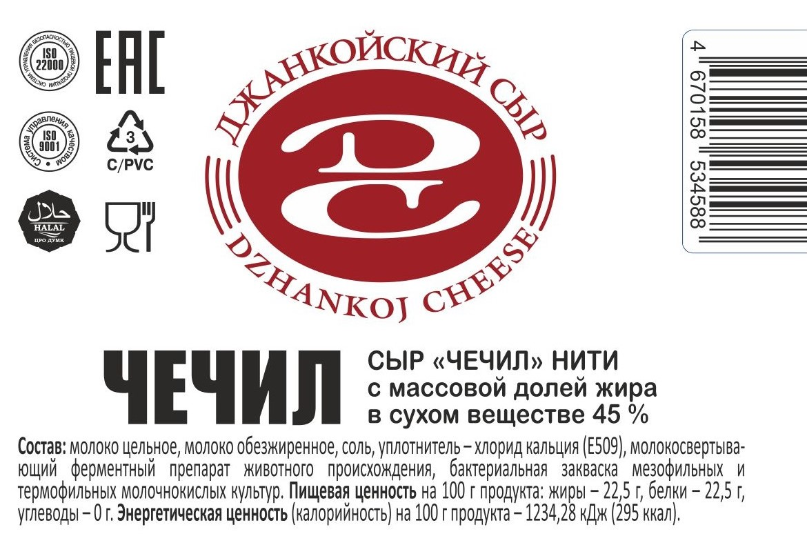 Сыр Джанкойский Сыр Халяль Чечил нити 45%, 80г