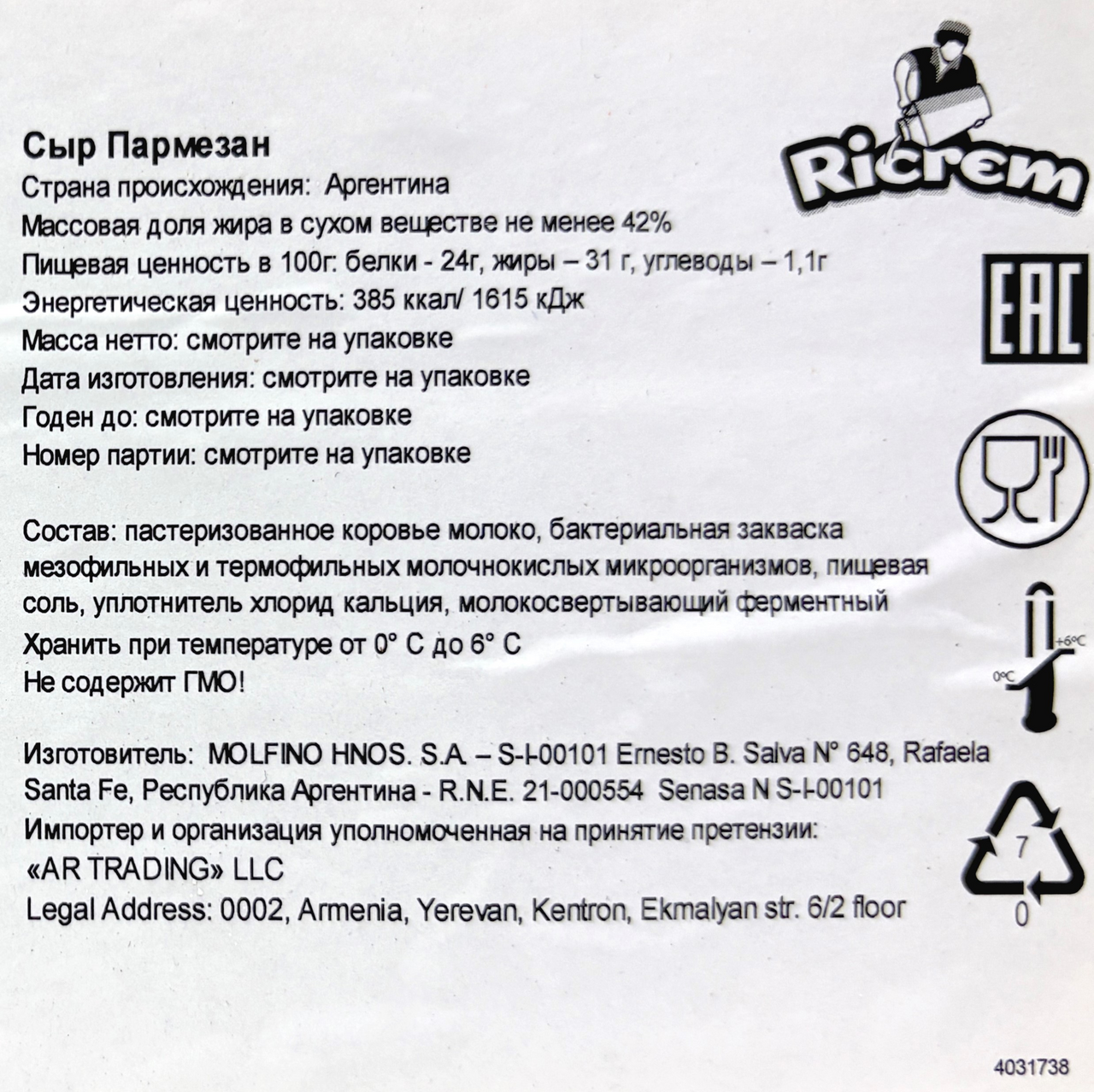 Сыр Ricrem Пармезан 42%, ~2.5кг