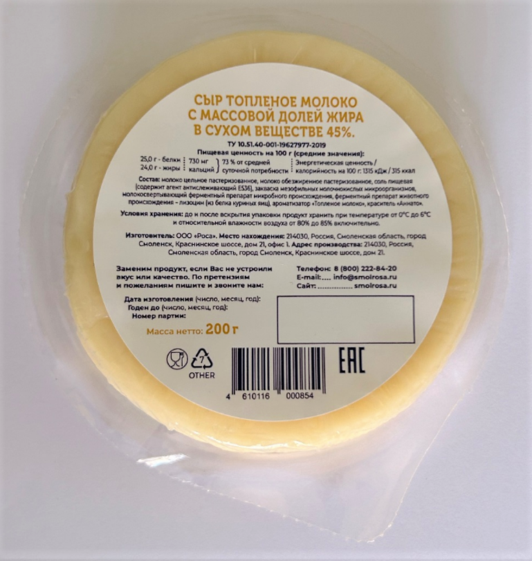 Сыр Роса топленое молоко 45%, 200г