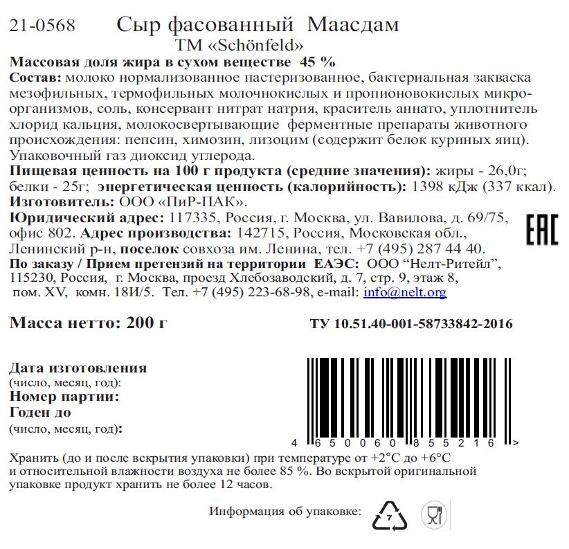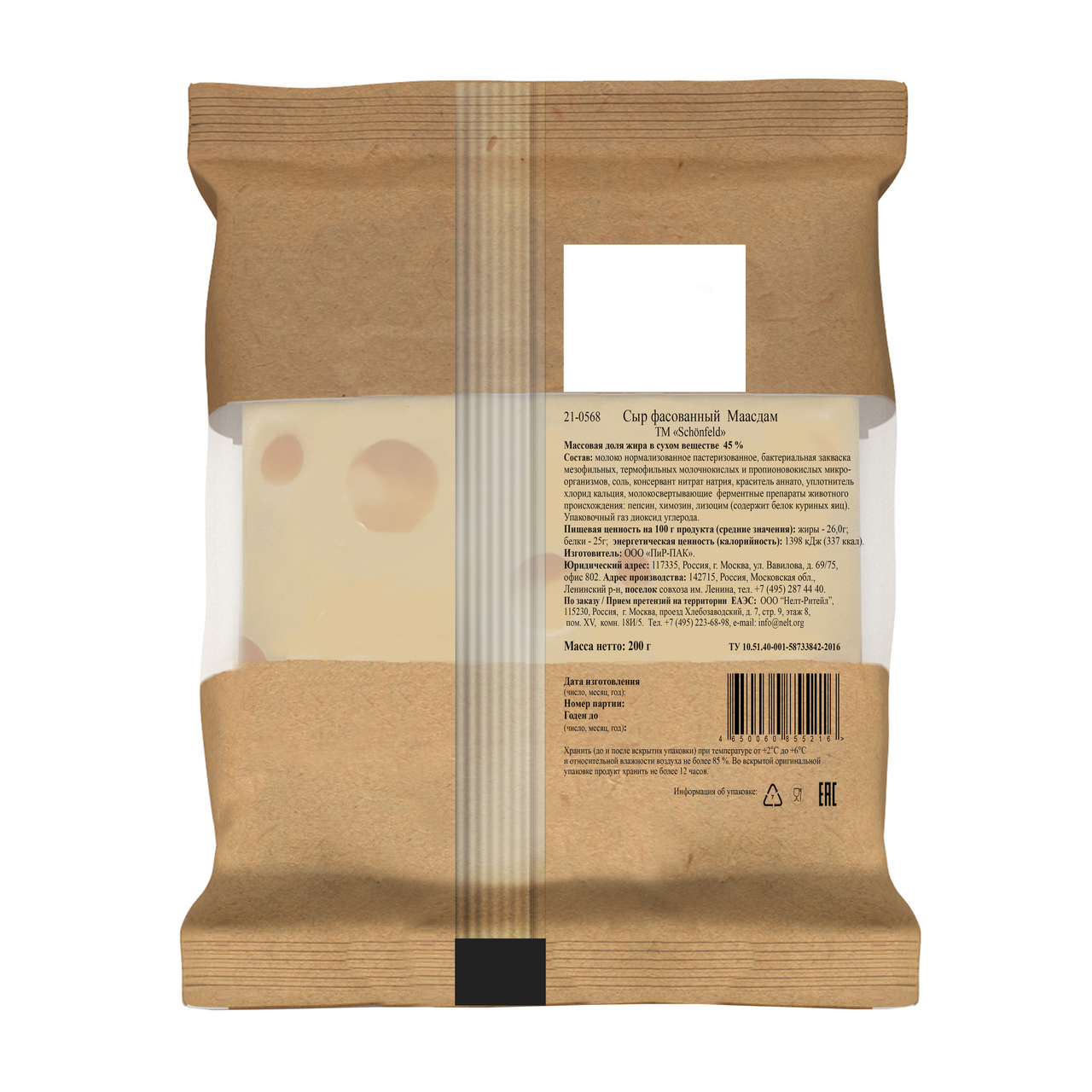 Сыр Schonfeld Маасдам полутвердый 45%, 200г