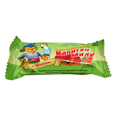 Сырок творожный глазированный Янта Капитан Милк с маком 18%, 40г