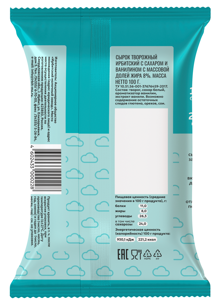 Сырок творожный Ирбитский молочный завод с ванилином 8%, 100г