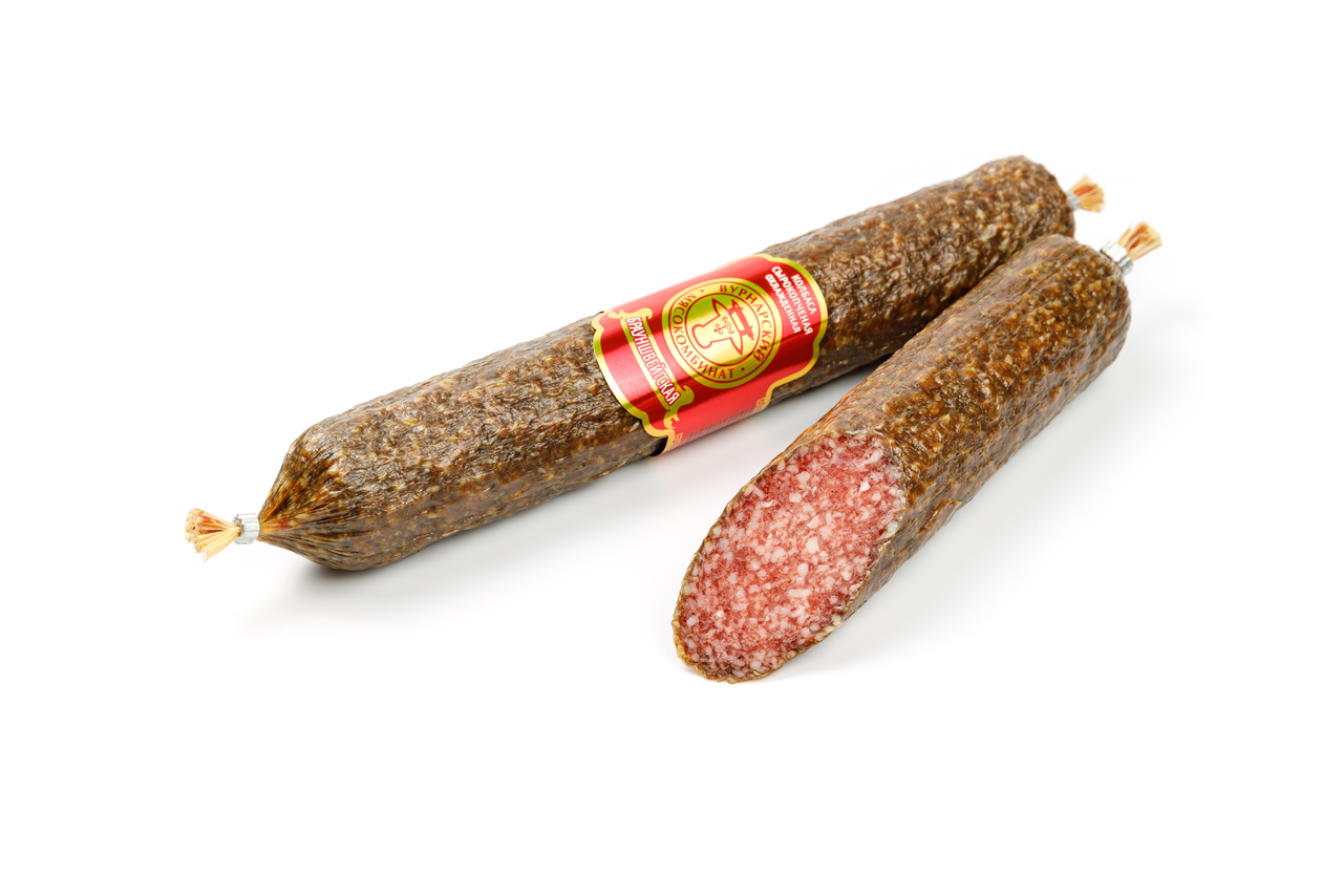 Колбаса Вурнарский МК Брауншвейгская сырокопченая высший сорт, ~380г представляет собой пикантный и аппетитный деликатес со среднезернистой структурой, который украсит собой как праздничный, так и повседневный стол. Он сделан из охлажденной фермерской говядины с добавлением шпика, соли и пряностей. Выразительный мясной вкус и приятный аромат порадует как домочадцев, так и гостей. Колбаса легко режется на порционные кусочки нужной толщины и размера. Она сделает более сытными бутерброды или сэндвичи, органично впишется в мясную тарелку в окружении деликатесов. Продукт можно подать с овощами и хлебом, различными гарнирами и соусами, прохладительными напитками. Небольшую упаковку можно взять с собой в поездку, поход или на работу. Колбаса отлично утоляет голод, придает сил и повышает работоспособность. Продукт поставляется в искусственной оболочке, которая сохраняет свежесть продукта в течение всего срока годности. На фирменной этикетке с логотипом бренда указана информация о дате производства, рекомендованном температурном режиме, составе.