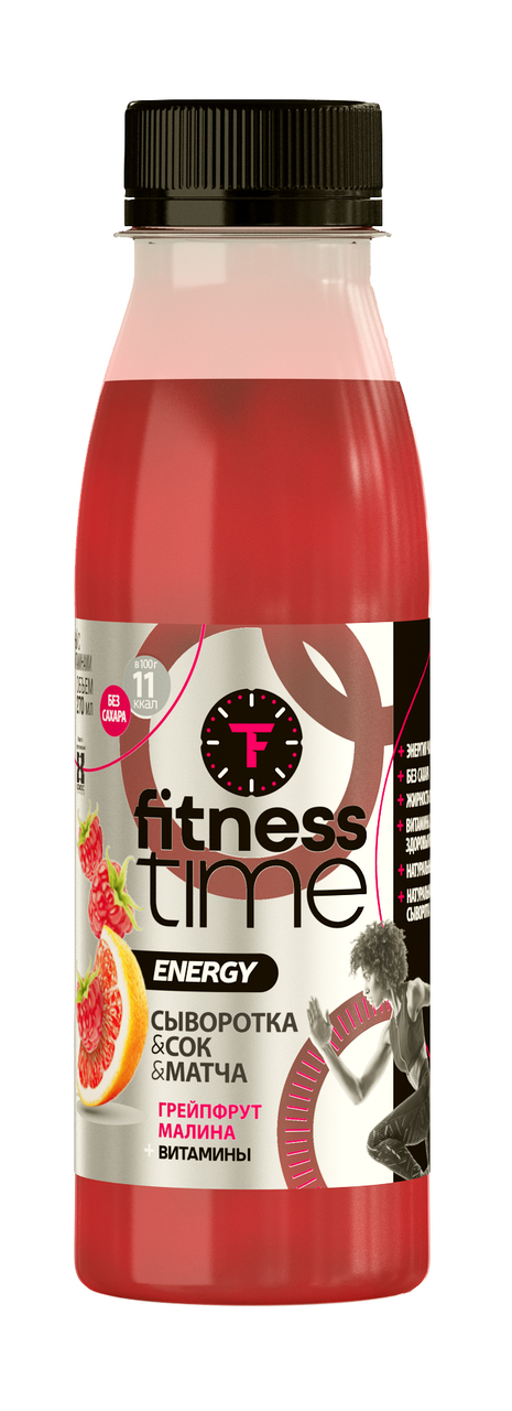 Напиток сывороточный пастеризованный с соком Fitness time Грейпфрут-малина, с матча и витаминами, 270 мл