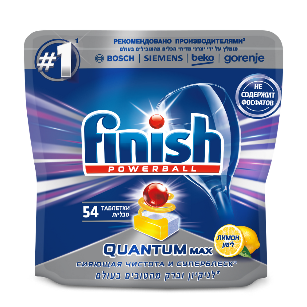 Finish Таблетки для посудомоечных машин Quantum Max Лимон, 54 шт