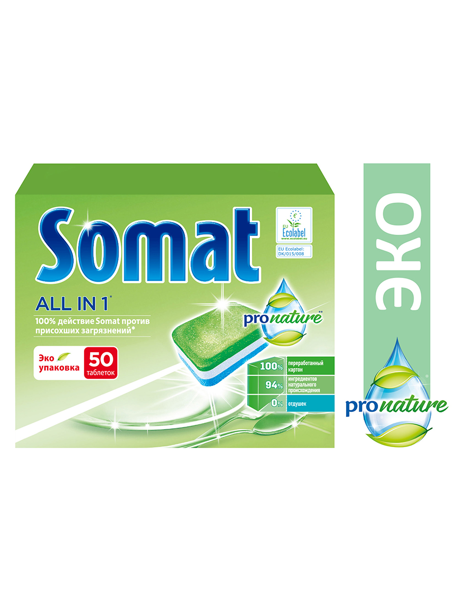 Таблетки для посудомоечной машины Сомат All in 1 ProNature, 50шт