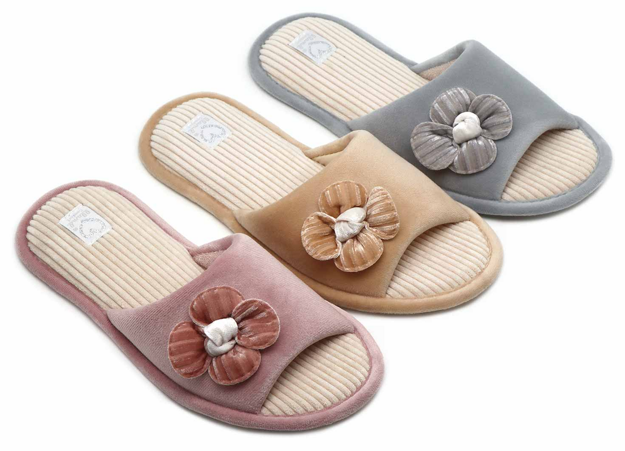 Тапочки женские Lucky Land велюр с аппликацией цветок