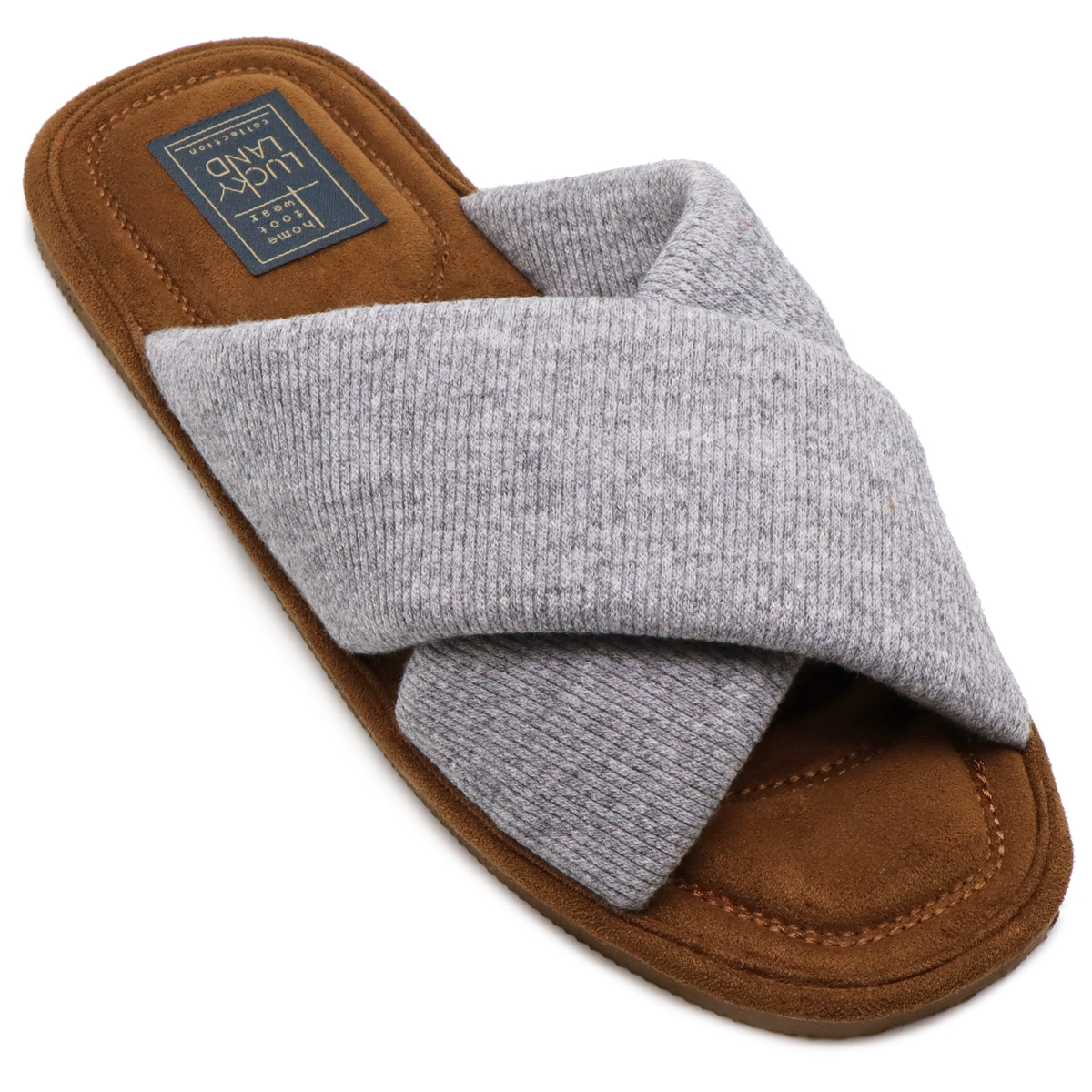 Тапочки мужские Lucky Land открытые трикотажные перекрещенные полоски светло-серые размер 46 - легкие, мягкие и очень прочные. Открытый носок сохраняет ноги дышащими, в них ноги не потеют. Меховые тапочки из натуральной овчины, снимут боль и давление после долгого рабочего дня. Подошва не оставляет следов на полу, хорошо снимает ударную нагрузку при ходьбе.