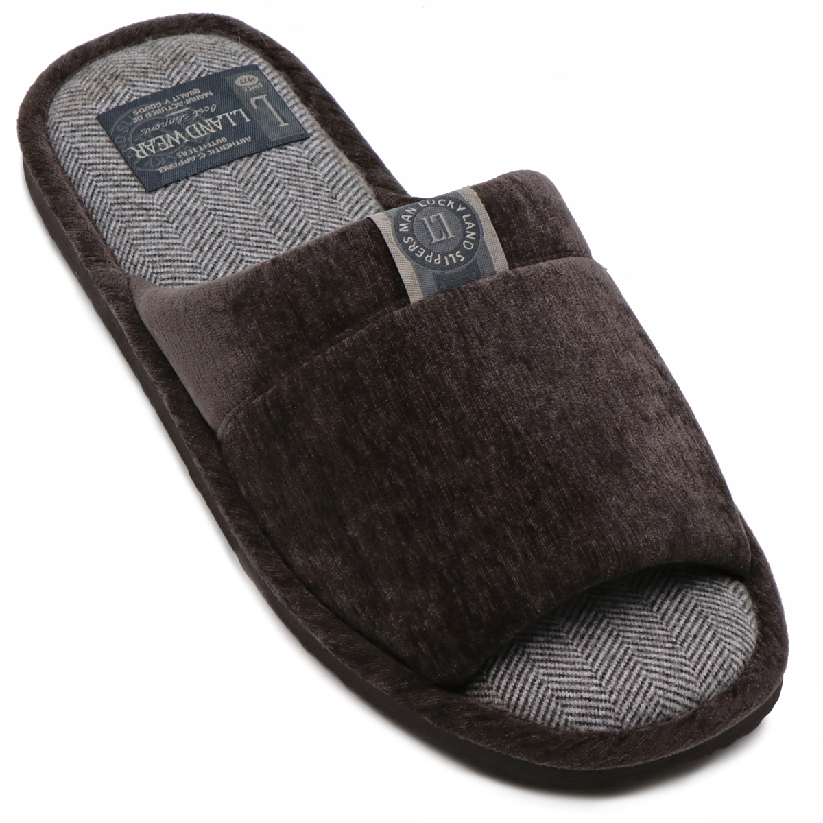Тапочки мужские Lucky Land открытые велюровые нашивка елочка коричневые размер 46 сшиты из мягкого текстиля, что делает тапки очень удобными и легкими. Уютные комнатные тапочки с мягкой стелькой оберегают ноги от усталости и помогают ступням при ходьбе. Липучка позволяет отрегулировать домашнюю обувь по полноте, делая её комфортной даже при высоком подъеме стопы. Благодаря открытому носку, тапочки хорошо проветриваются и дышат. Домашние мужские тапочки подходят для ношения как дома, так и на балконе, на даче. Их подошва состоит из ЭВА — пластика, который отличается своей прочностью и долговечностью, а значит, тапочки для дома будут носиться долго.