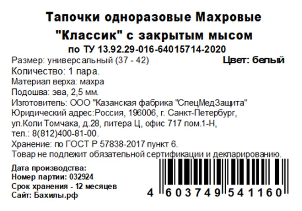 Тапочки SMZ Классик одноразовые махровые белые закрытые