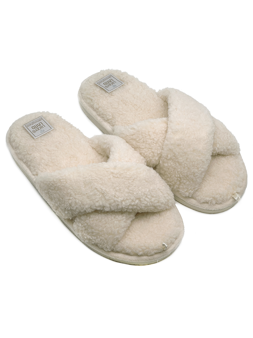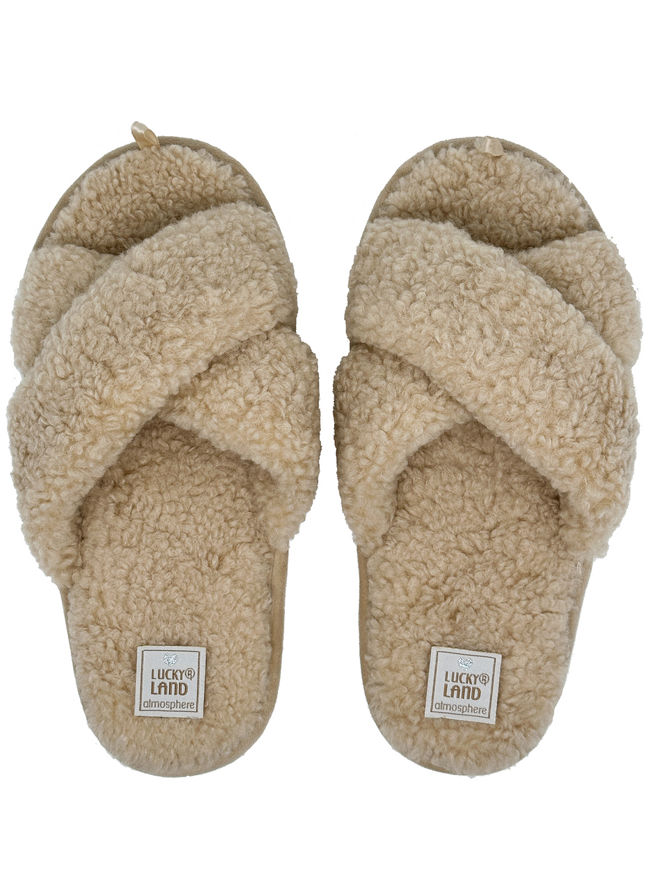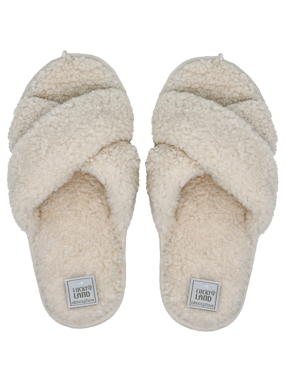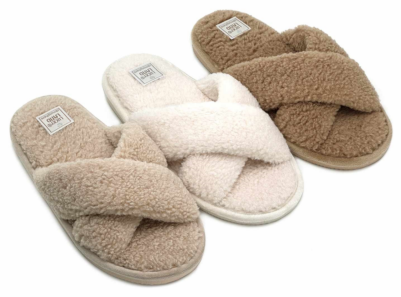 Тапочки женские Lucky Land открытые букле перекрестное плетение - отличный вариант обуви на каждый день. Удобная легкая модель тапочек подарит комфорт вам и вашим гостям дома и на даче. Для ухода за тапочками достаточно сухой чистки.