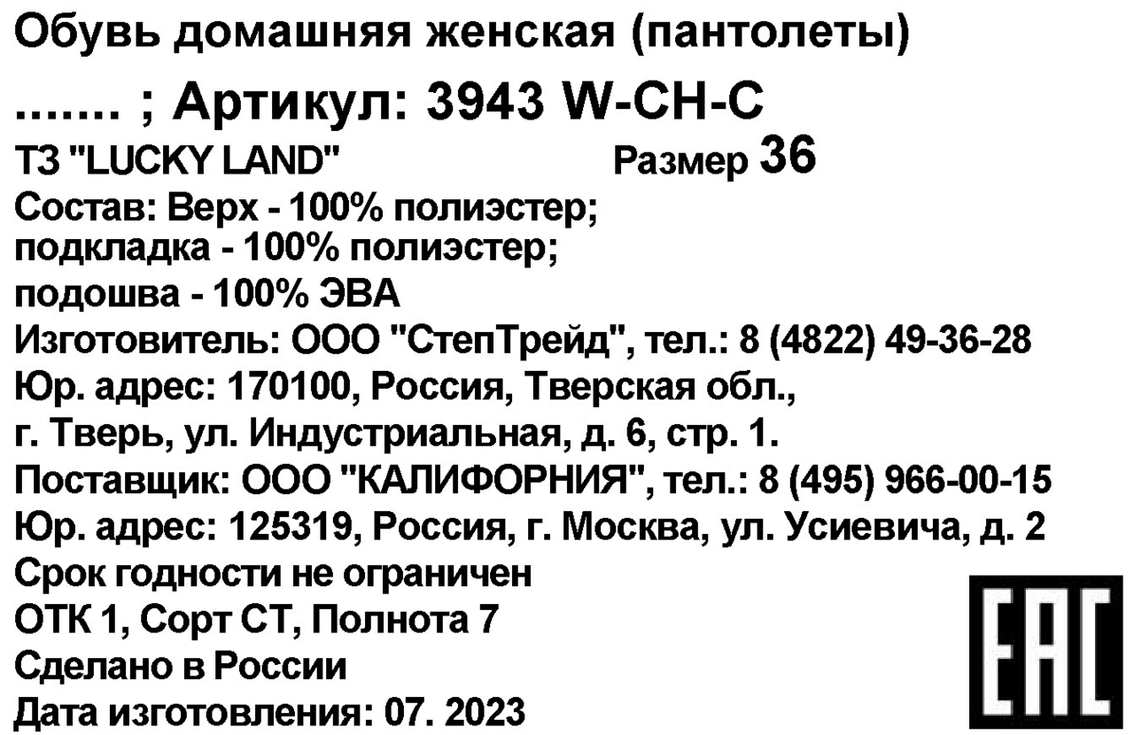 Тапочки женские Lucky Land 3943 W-CH-C с вышивкой, р. 36-41