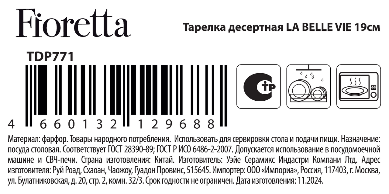 Тарелка десертная La bellie vie 19см. Бренд Fioretta известен своими коллекциями керамической, стеклянной и фарфоровой посуды. Изделия, выпускаемые под данной маркой, отличаются разнообразием и оригинальным исполнением и дизайном. Наборы Fioretta достойно украсят любой праздничный стол, а также станут приятным подарком на юбилей или свадьбу. Подходит для подачи десертов и закусок.