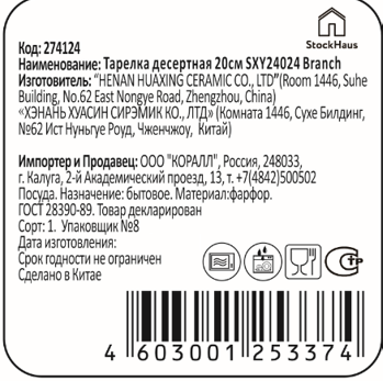 Тарелка десертная Stockhaus Branch, 20см