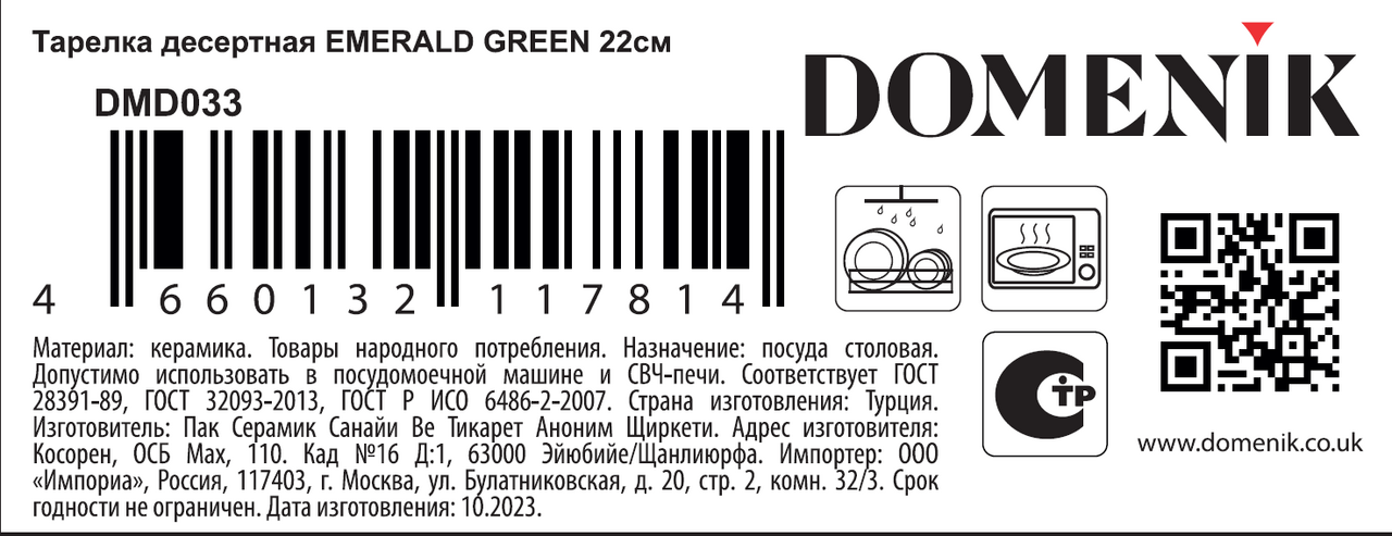 Тарелка Fioretta Emerald десертная, 22 см — это столовая керамическая посуда. Ее можно использовать для подачи десертов, сладостей, закусок, для сыра, для фруктов, для пасты. Кроме того, она подходит для украшения интерьера дома и дачи. Посуда экологически чистая и безопасная, не содержит свинца или кадмия. Тарелка устойчива к сколу краев и царапинам, пригодна для использования в микроволновых печах, посудомоечных машинах.