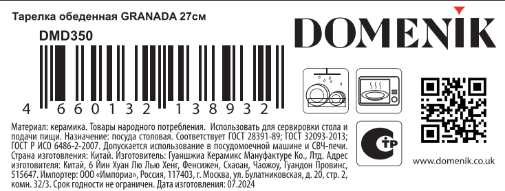 Тарелка обеденная Domenik Granada, 27см