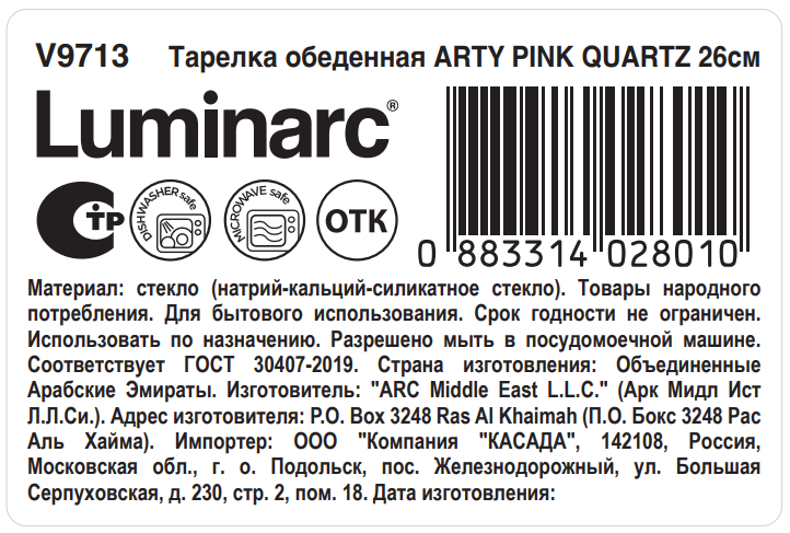 Тарелка обеденная Arty Pink Quartz 25см. Стеклянная обеденная тарелка Luminarc из коллекции Arty Pink Quartz используется в сервировке, как подстановочная, а так же для самостоятельной подачи нарезки, фруктов или пирожных. Название этой коллекции переводится, как туман. Дымчато-розовые тарелки Pink Quartz (Арти Кварц Пинк) красиво сочетаются с серыми, голубыми и сиреневыми тарелками из линейки Arty. Выполнена из высококачественного ударопрочного стекла. Это обеспечивает ей прочность и долговечность, а также защищает от повреждений и царапин. Тарелка имеет красивый дизайн, который подойдет для любого интерьера и стиля сервировки стола. Она легко моется вручную или в посудомоечной машине.