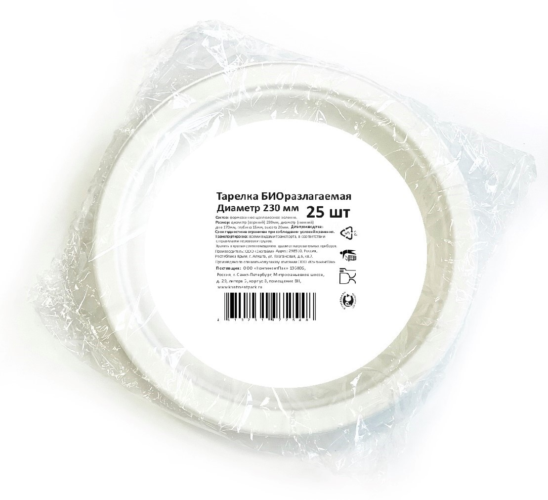 Тарелка одноразовая Континентпак из целлюлозы 23см, 25шт