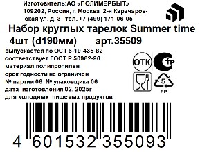 Тарелка Полимербыт Summer Time 19см, 4шт