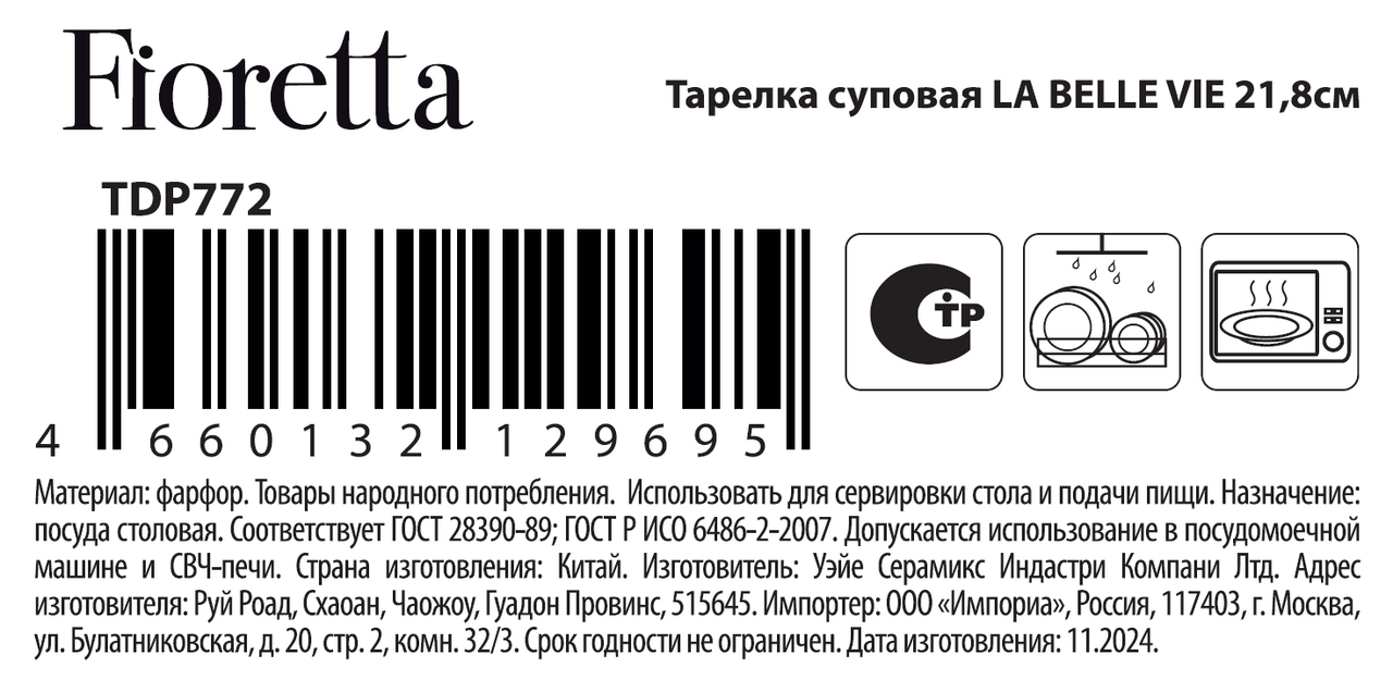 Тарелка суповая La bellie vie 21.8см. Бренд Fioretta известен своими коллекциями керамической, стеклянной и фарфоровой посуды. Изделия, выпускаемые под данной маркой, отличаются разнообразием и оригинальным исполнением и дизайном. Наборы Fioretta достойно украсят любой праздничный стол, а также станут приятным подарком на юбилей или свадьбу. Предназначена для подачи первых блюд.