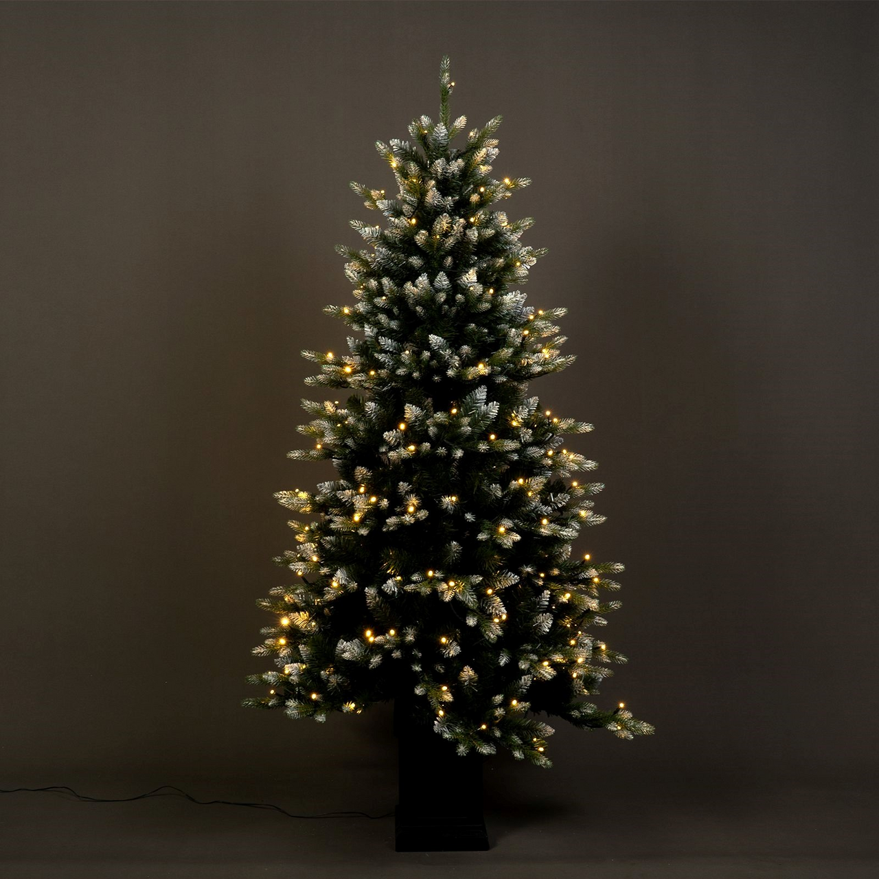Великолепие, которое не нужно украшать! Эта ель высотой 160 см уже оснащена встроенной теплой белой подсветкой из 200 светодиодов. Мягкий свет, играющий в пушистой хвое, создает невероятно уютную и волшебную атмосферу с наступлением вечера. Качественные материалы (полирезин и металл) и зонтичная система раскрытия обеспечивают не только красоту, но и долговечность.