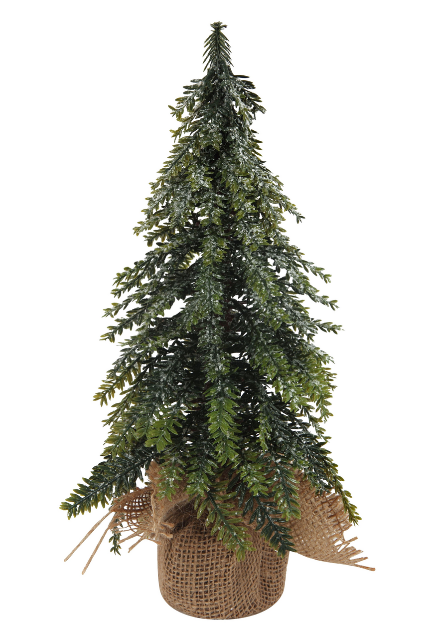 Компактная искусственная ель высотой 35 см уже установлена в очаровательный мешочек из натуральной мешковины. Это готовое праздничное решение, которое не требует подставки и дополнительных усилий — просто поставьте её на стол, полку или камин, и атмосфера волшебства создана. Пушистые ветки из качественного ПВХ выглядят реалистично, а милый дизайн делает её прекрасным подарком и украшением любого интерьера.