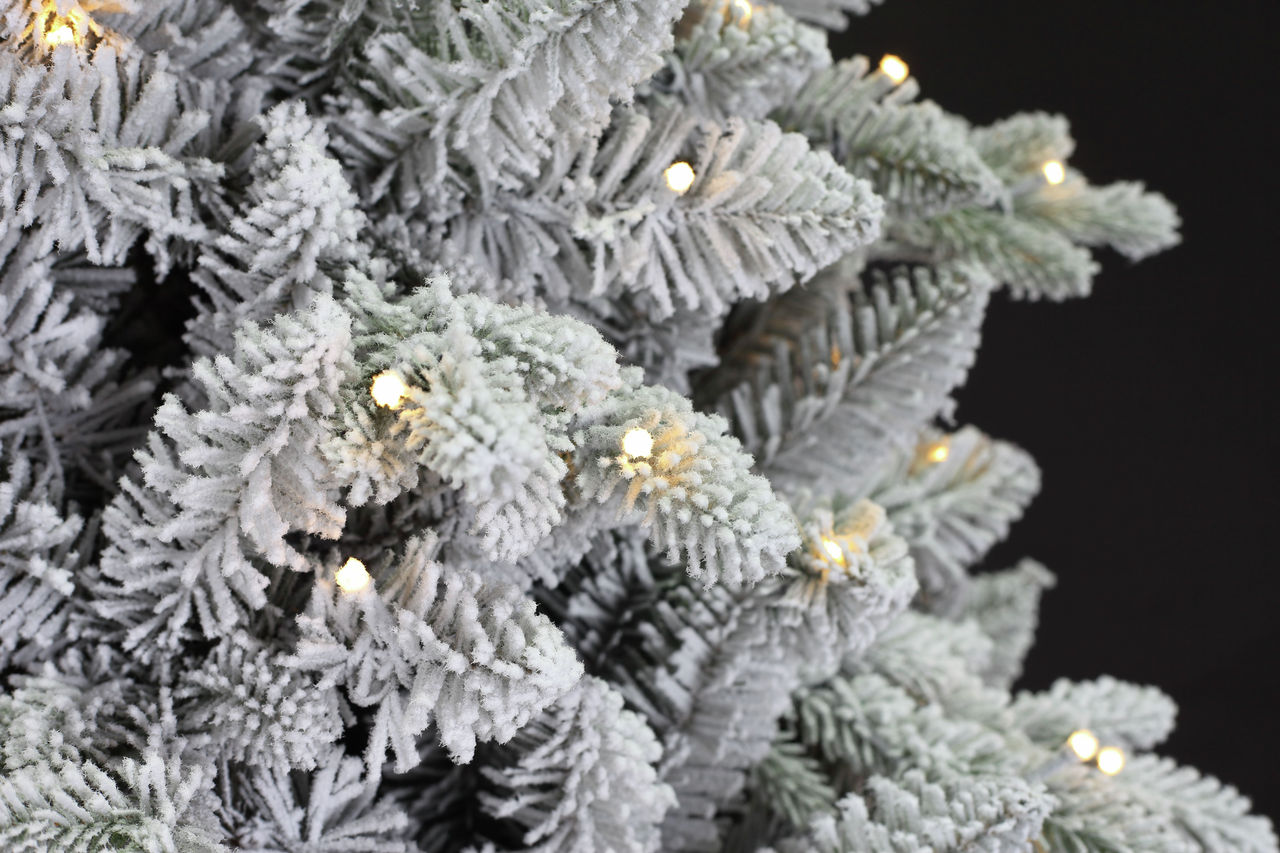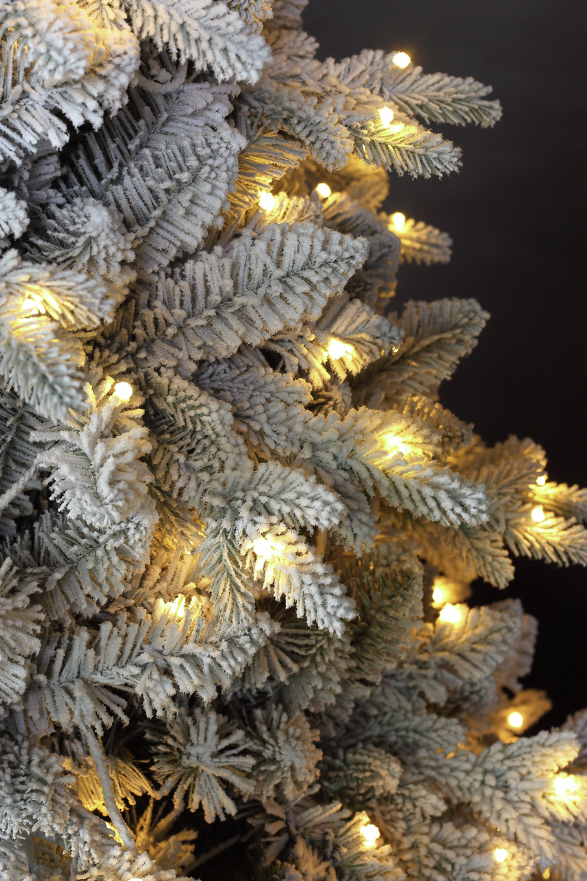 Величественная и волшебная! Эта 213-сантиметровая ель сочетает в себе два праздничных чуда: эффект заснеженности и мягкую встроенную подсветку из 400 светодиодов. Модель легко собирается благодаря системе раскрытия веток на шарнирах. Её устойчивая подставка и внушительные размеры позволяют установить лесную красавицу в любом удобном месте, создавая по-настоящему масштабное праздничное настроение.