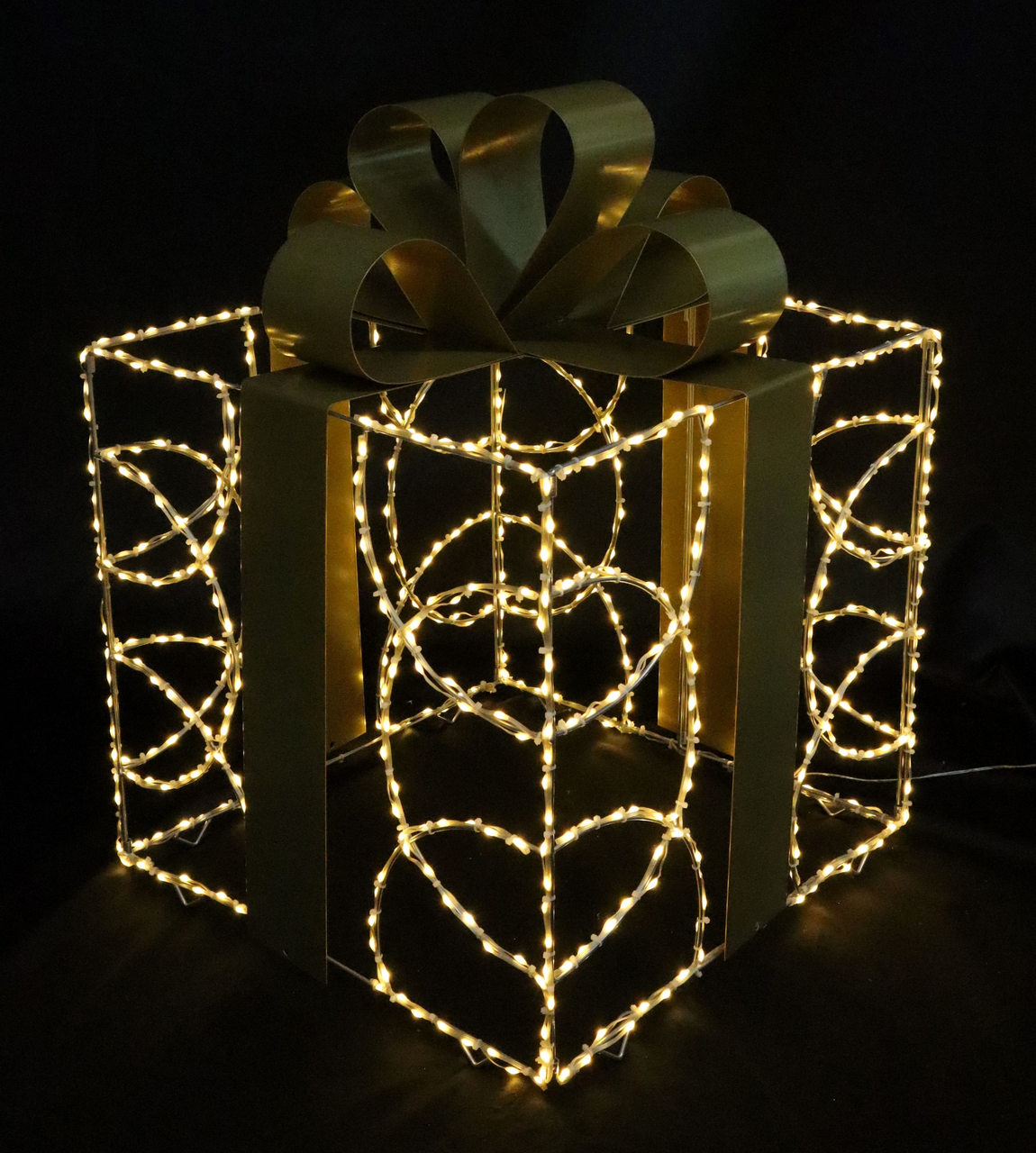 Роскошная световая фигура в виде праздничной подарочной упаковки высотой 60 см создаст в вашем пространстве атмосферу настоящего торжества. Триста теплых белых светодиодов дарят мягкое равномерное свечение, напоминающее сияние праздничной мишуры. Прочная металлическая конструкция с элементами из меди и ПВХ обеспечивает устойчивость и долговечность, а защита IP44 позволяет размещать композицию как в интерьере, так и под открытым небом. Встроенный таймер с настройкой от 6 до 18 часов позволяет автоматизировать работу — упаковка будет самостоятельно зажигаться с наступлением вечера и отключаться в заданное время. Длинный кабель питания 5 метров и безопасное напряжение 31В обеспечивают удобное подключение, а энергоэффективная конструкция потребляет всего 6 Вт. Стильный дизайн и умеренный вес 3 кг делают эту светящуюся упаковку идеальным украшением парадного входа, сада или витрины, даря пространству волшебство праздника.