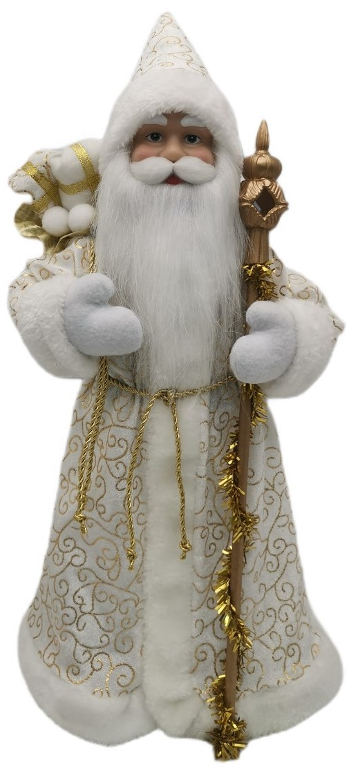 Добрый символ Рождества для вашего дома! Фигура Санты высотой 45 см выполнена с удивительной детализацией — от пушистой белой бороды до традиционного красного костюма с меховой отделкой. Изготовлена из качественных материалов (текстиль и пластик), что делает ее прочной и безопасной. Идеально размещается под елкой, на камине или праздничном столе, создавая теплое праздничное настроение. Прекрасный подарок для сохранения семейных рождественских традиций!