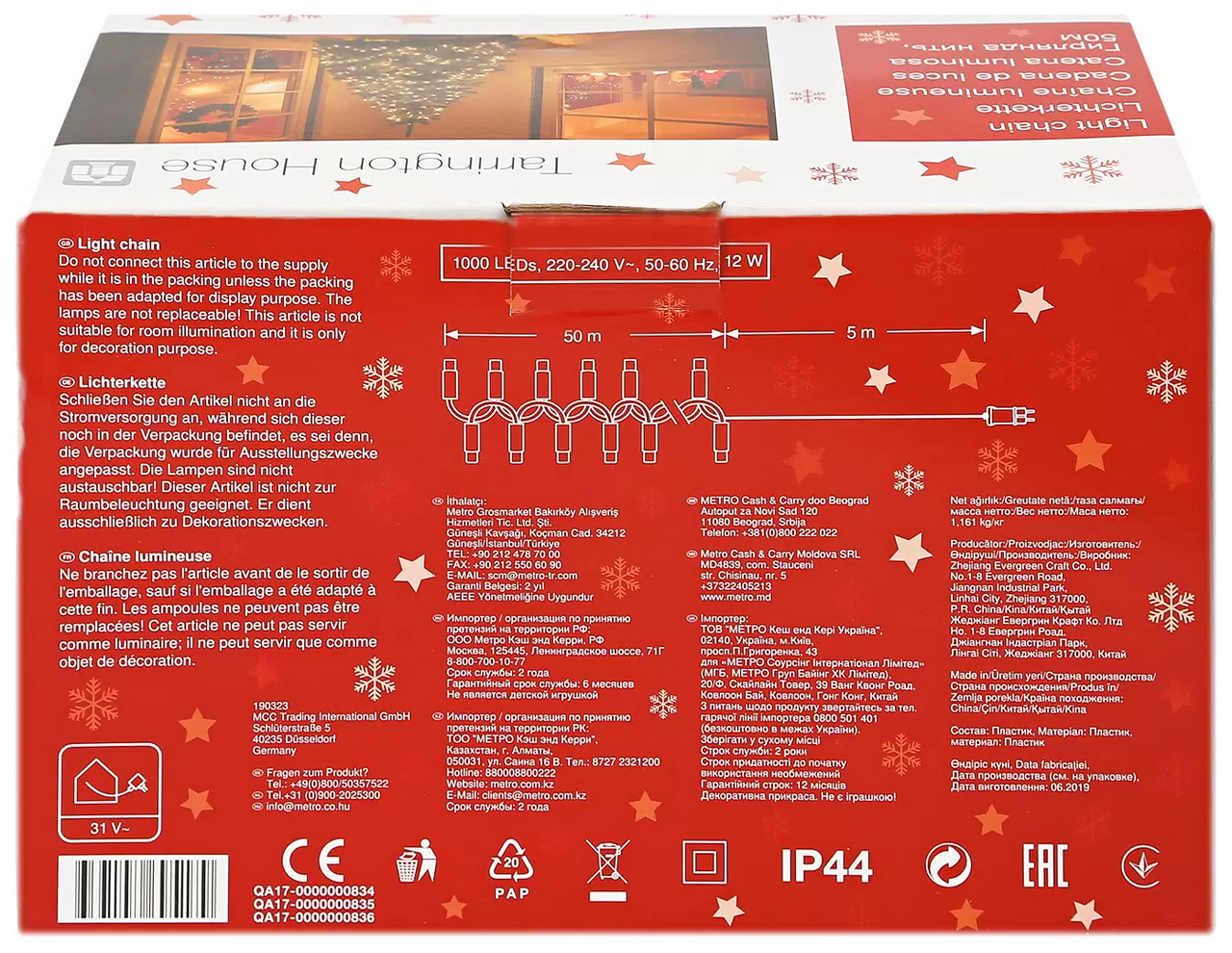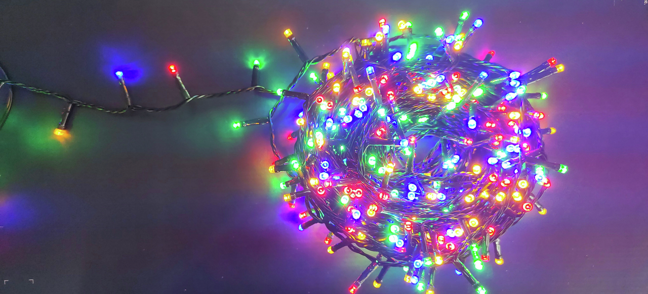Прекрасный декоративный элемент, светящийся разными огоньками и создающий атмосферу праздника и уюта. Это отличный способ акцентировать внимание на отдельных предметах интерьера, создать неповторимый арт-объект или использовать в качестве дополнительной подсветки. Гирлянда может эффектно подчеркнуть красоту картины, вазы с цветами, статуэтки или украсить небольшую елочку. Данный вариант имеет большую длину и трансформатор для подключения в сеть с защитой IP44, что позволят использовать его и на улице. Гирлянда состоит из тонкого провода длиной 20 метров, с расположенными на нем 1000 долговечными светодиодами в цвете мультиколор. Длина электрошнура 3 метра.