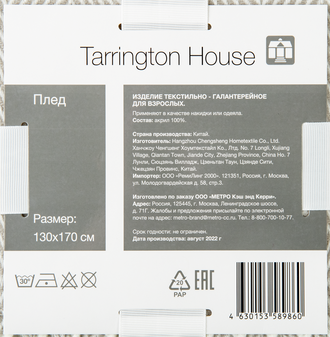 Tarrington House Плед трикотажный с принтом серая елочка, 130 х 170 см не мнется, не вытягивается, хорошо сохраняет тепло и приятен на ощупь. По краям он оторочен бахромой. Он отлично согреет в прохладное время года, а летом заменит одеяло. Его можно использовать в качестве покрывала для дивана или кровати, брать с собой на природу (в качестве подстилки или одеяла в палатку). Плед такого размера подойдет для детей и подростков. Взрослые смогут завернуться в него и уютно устроиться в кресле зимним вечером. Он отлично подходит для использования в качестве автомобильного пледа.