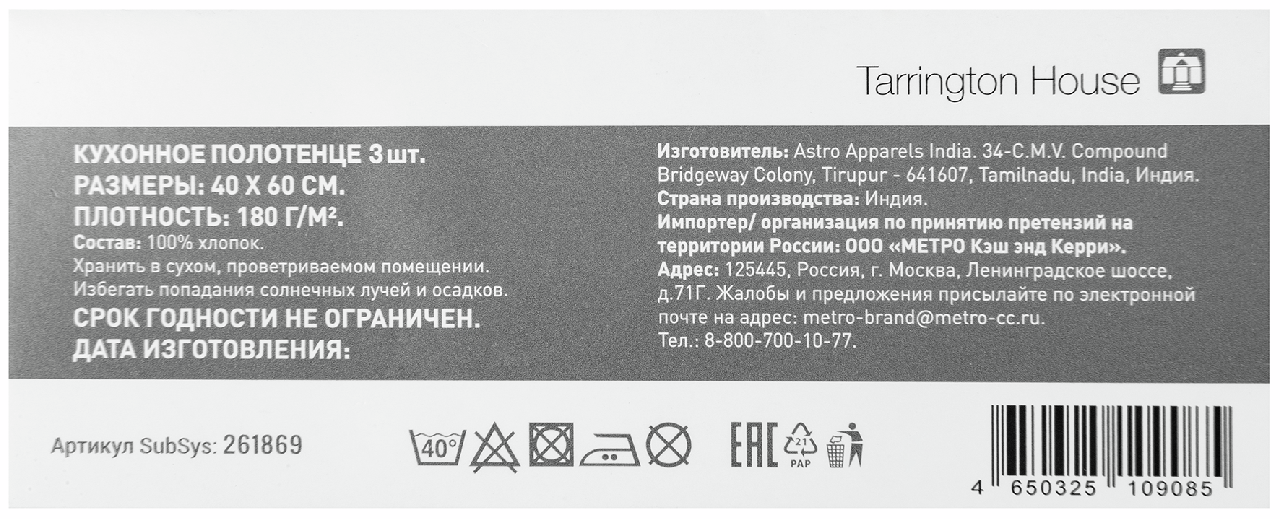 Tarrington House Полотенце кухонное белое-белое-зеленое с принтами 3шт 200г, 40 x 60см