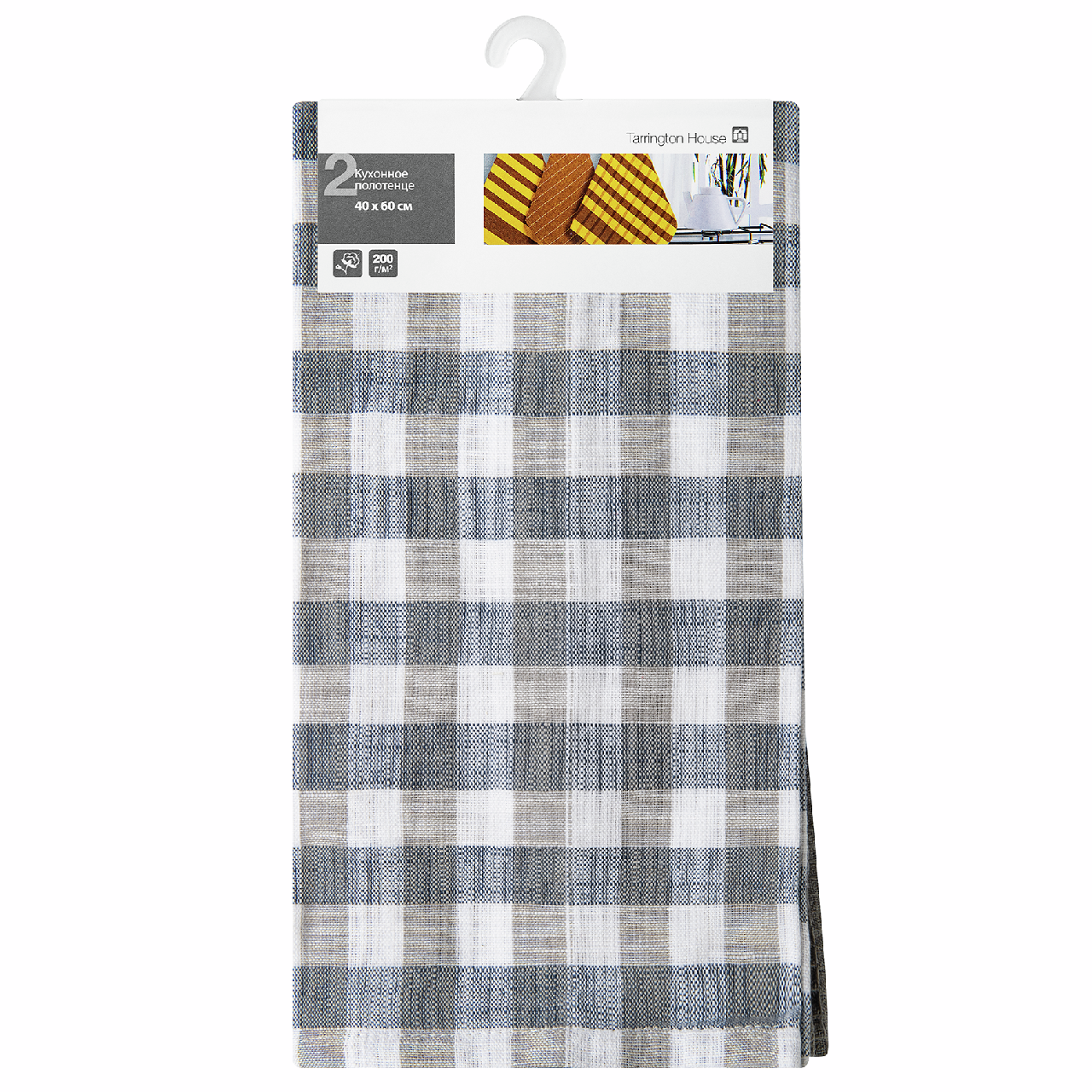 Tarrington House Полотенце кухонное белый-серый клетка-однотонное 2шт 200г, 40 x 60см