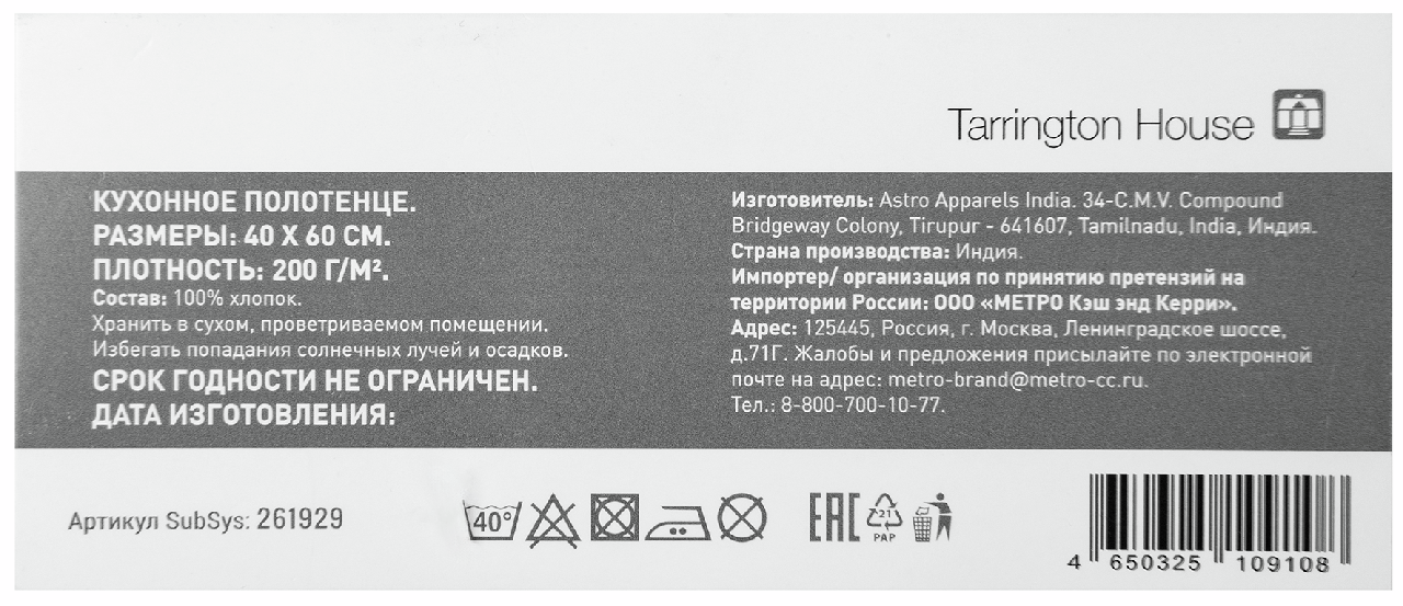 Tarrington House Полотенце кухонное вафельное белое-красное с принтом Новый год 180г, 40 x 60см является универсальным кухонным аксессуаром. Полотенце изготовлено из хлопковой ткани средней плотности, украшенной полосками. Оно станет не только украшением на любой кухне, но и прослужит долго, так как имеет отличное качество. Эффективно абсорбирует большие объемы воды с посуды, не оставляет на стекле ни ворсинок, ни микрочастиц, а также быстро сохнет.