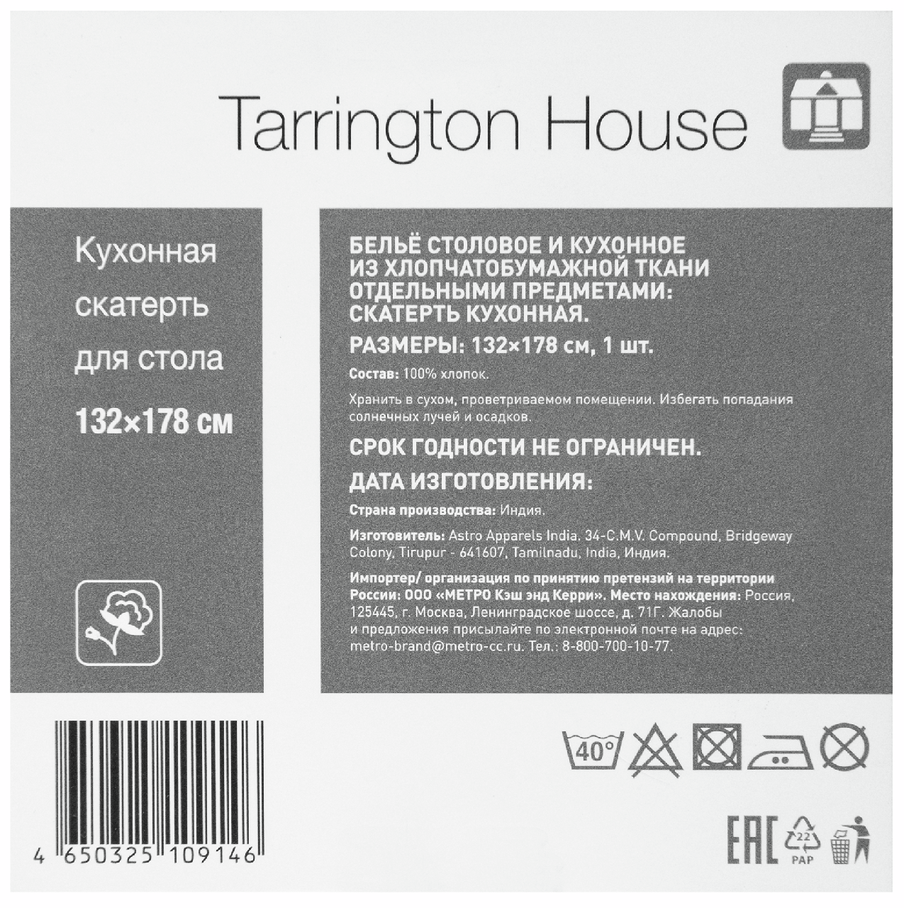 Tarrington House Скатерть красная 135г, 132 x 178см