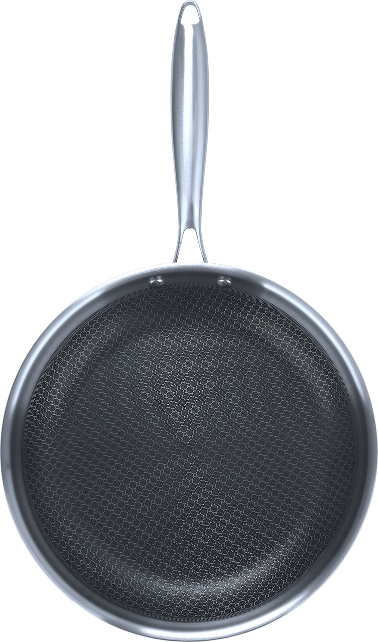 Tarrington House Сковорода из нержавеющей стали 28 () x 5,5 (В) см. с антипригарным покрытием в виде сот. Материал изготовления: Трехслойная нержавеющая сталь толщиной 2,3 мм (внутреннее антипригарное покрытие) triply S/ S с полностью индукционным дном. Цельнолитая длинная ручка из нержавеющей стали SS. Толщина: 2,1 мм по окружности. Основной цвет: серебристый. Подходит для всех видов плит и духовых шкафов. Можно мыть в посудомоечной машине. Вес нетто: 1160 г, +/-5%.