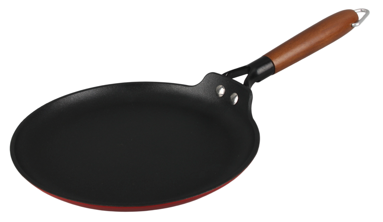 Блинная чугунная сковорода с антипригарным покрытием премиум класса. Готова к использованию, не нужно прокаливать. Не выделяет вредных веществ. Равномерно и быстро прогревается. Для всех видов плит, включая индукционные.
