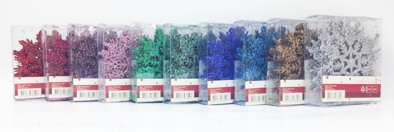 Новогоднее украшение Снежинки. Диаметр 10 см. В наборе 6 шт. Цвета: в ассортименте. Будет отгружен тот цвет, который будет в наличии на складе.