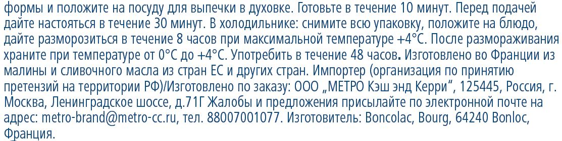Тарт METRO Chef малина, 900г — открытый пирог с ягодной начинкой, классическое блюдо французской кухни. Приготовлен он из специального песочного теста и дополнен спелыми ягодами малины. Это вкусный и сытный десерт, который понравится и детям, и взрослым. Тарт обладает хрустящей основой с небольшими бортиками и отлично сочетается с какао, латте, капучино и другими кофейными напитками, а также черным или зеленым чаем, компотом и узваром. Замороженный пирог быстро готовится, а подать его можно как к праздничному, так и повседневному столу. METRO Chef – это собственная ТМ Metro C&C, под которой реализуется продукция, созданная профессионалами для шеф-поваров и людей, увлеченных гастрономией. Это разнообразные орехи, молочные продукты, консервированные овощи, грибы, кондитерские изделия и многое другое. Продукция бренда безопасна и соответствует всем стандартам качества.