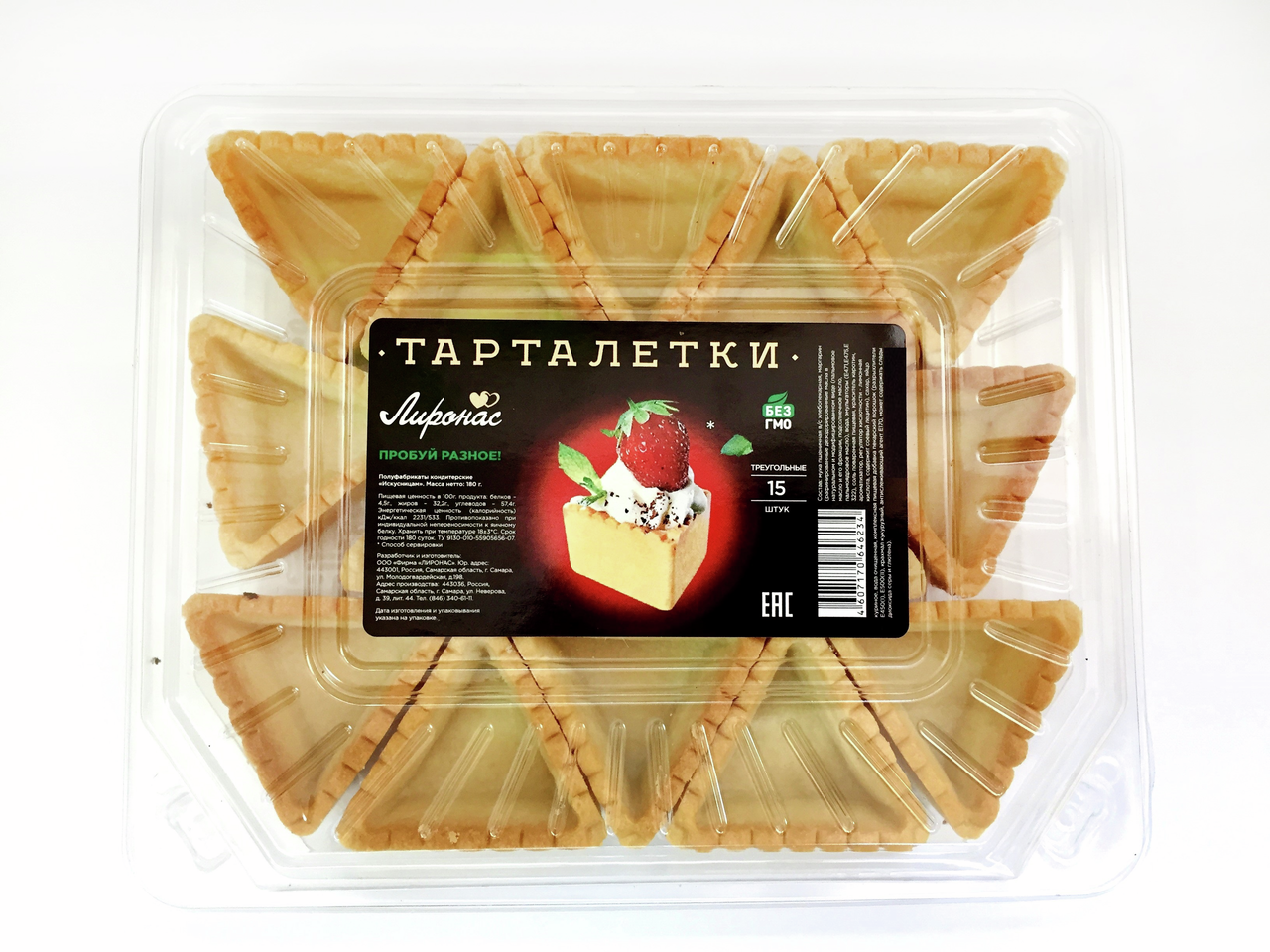 Тарталетки Треугольные торговой марки Лиронас – это песочные корзиночки в форме треугольника. Используются для фуршетного стола под салаты, десерты. Незаменимы при проведении торжественных вечеров, юбилеев, свадеб и банкетов.