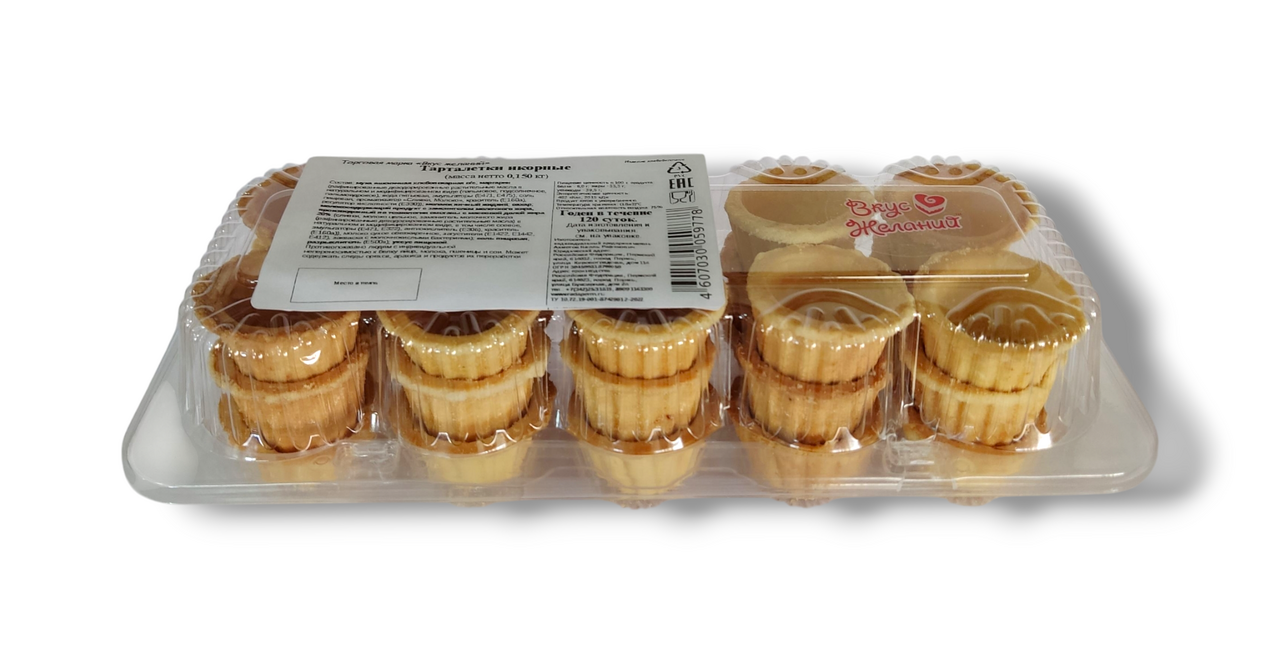 Песочные корзиночки для заполнения различными начинками (салаты, икра, кремы, джемы и другое). Готовы к употреблению. Украсят любой праздничный стол.