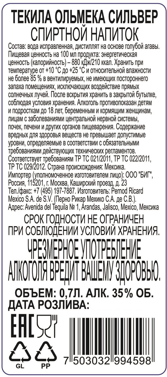 Olmeca - бренд, занимающий одну из лидирующих позиций в мире. Ежегодно он удостаивается наград на всемирных конкурсах. Так, в 2007 году текила Ольмека получила 10 наград на различных конкурсах, включая такие престижные соревнования, как Concours Mondial de Bruxelles и International Wine and Spirit Competition. Текила Ольмека - легендарный мексиканский напиток. Его название связано с историей Мексики и местными древними цивилизациями. Считается, что еще задолго до майя часть Центральной Америки населяли ольмеки - могущественная цивилизация, которая совершила множество открытий в различных сферах жизнедеятельности. Одно из них - медовая вода, созданная из сока голубоватого растения - агавы. Впрочем, по легендам самих ольмеков, этот нектар был дарован им богами. Текила хороша в чистом виде с лимоном и солью. Может употребляться в качестве аперитива с мясными закусками. На ее основе также готовят разнообразные коктейли.