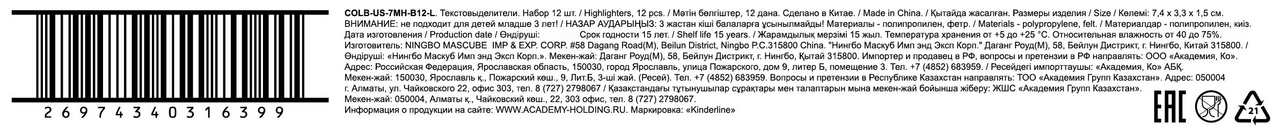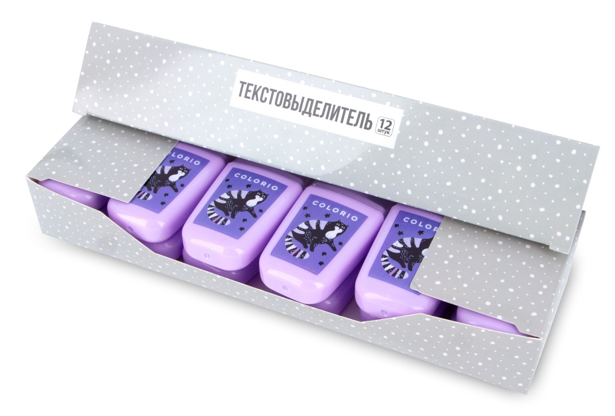 CUS7MHB12L Текстовыделитель мини сиреневый, 12 шт. в картонном дисплее. Colorio. Универсальный текстовыделитель, предназначен для выделения необходимых мест в печатном и рукописном тексте на простой, ксероксной и факсовой бумаге. Скошенный наконечник позволяет проводить линии от 1 до 5 мм. Корпус из полипропилена предотвращает испарение чернил и обеспечивает длительный срок хранения.