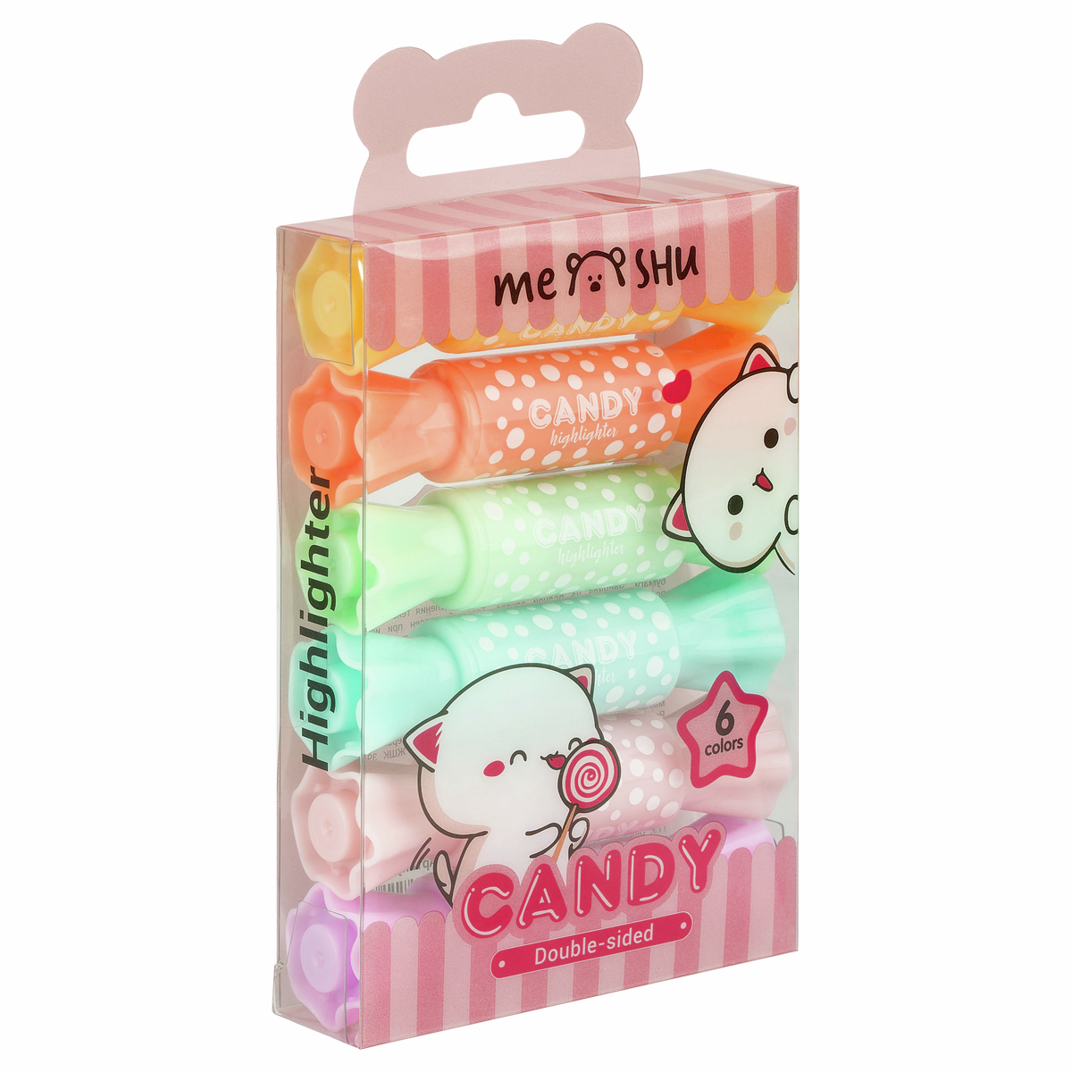 Текстовыделители Meshu Candy двусторонние 6 цветов, 6шт