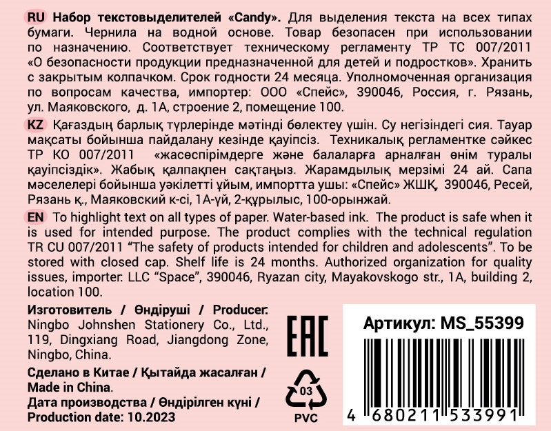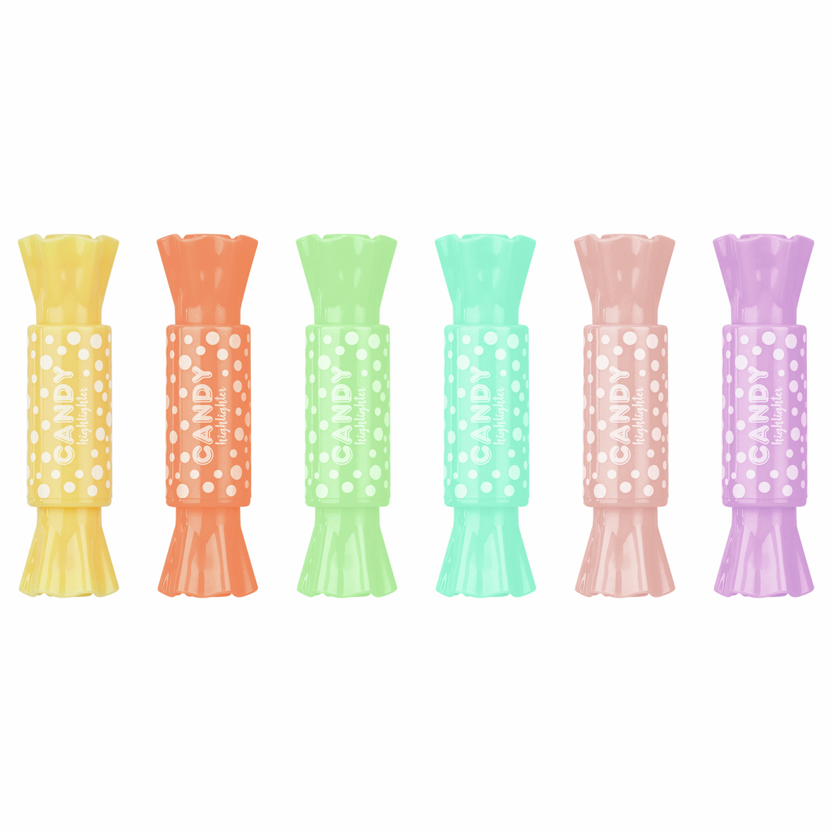 Набор двусторонних мини-текстовыделителей Meshu Candy отлично подойдёт тем, кто хочет поднять себе настроение на учёбе или работе. Представлено шесть пастельных текстовыделителей в форме сладостей: жёлтый, розовый, зелёный, голубой, оранжевый, фиолетовый. Длина линии письма может достигать 200 метров. Двусторонний текстовыделитель Meshu Candy на водной основе представлен со скошенным пишущим узлом с толщиной лин��и 4мм и пулевидным - 2мм. Компактный размер 7,5мм идеально подходит для пенала. Цвет колпачка и корпуса соответствует цвету чернил. Текстовыделители упакованы в ПВХ-бокс с европодвесом.