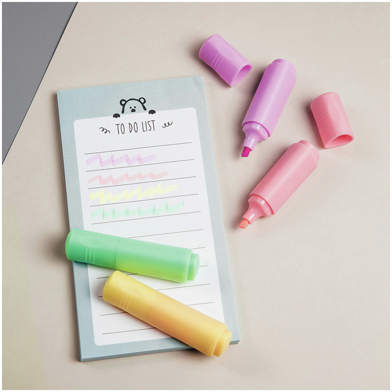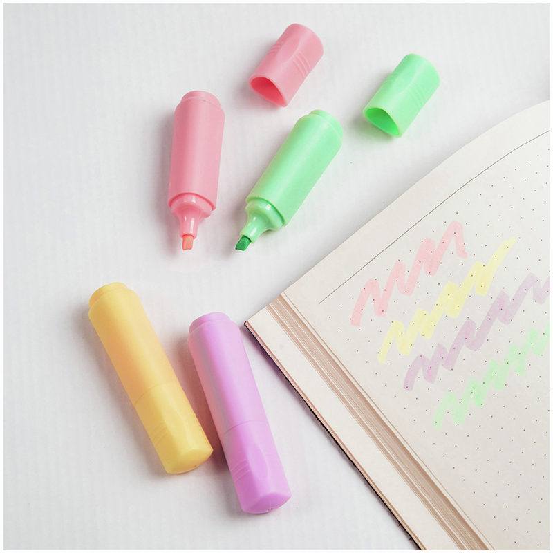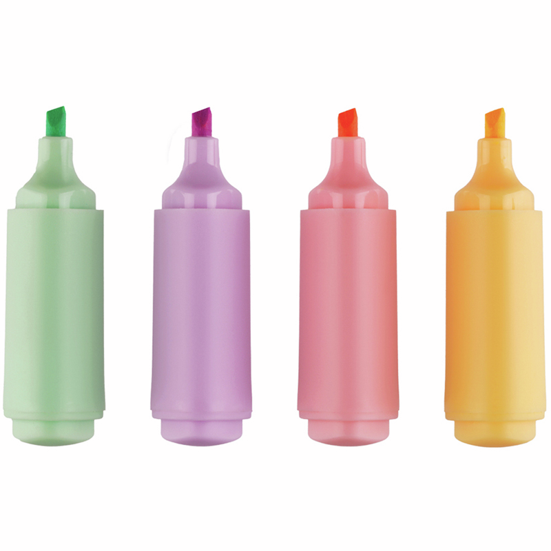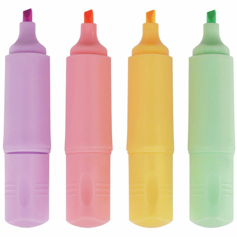 Набор текстовыделителей с пастельными чернилами на водной основе. Длина линии до 200 метров. Скошенный наконечник. Толщина линии от 1 до 3 мм. Удобная трехгранная форма корпуса. Цвет колпачка и корпуса соответствует цвету чернил.