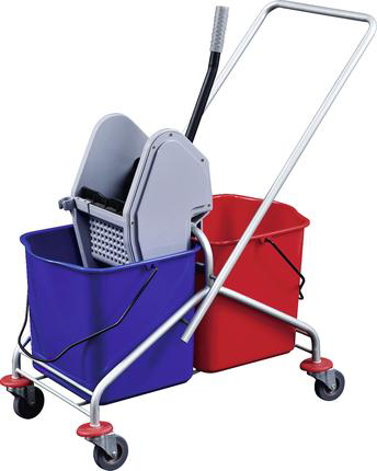 Тележка двухведерная на пластиковой раме. 2 ведра с носиком-сливом, ручка из стали, съемный отжим.Материал: полипропилен, стальГабаритные размеры: 81х42х87смСрок годности: не ограничен