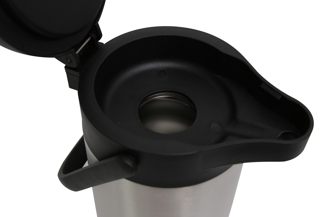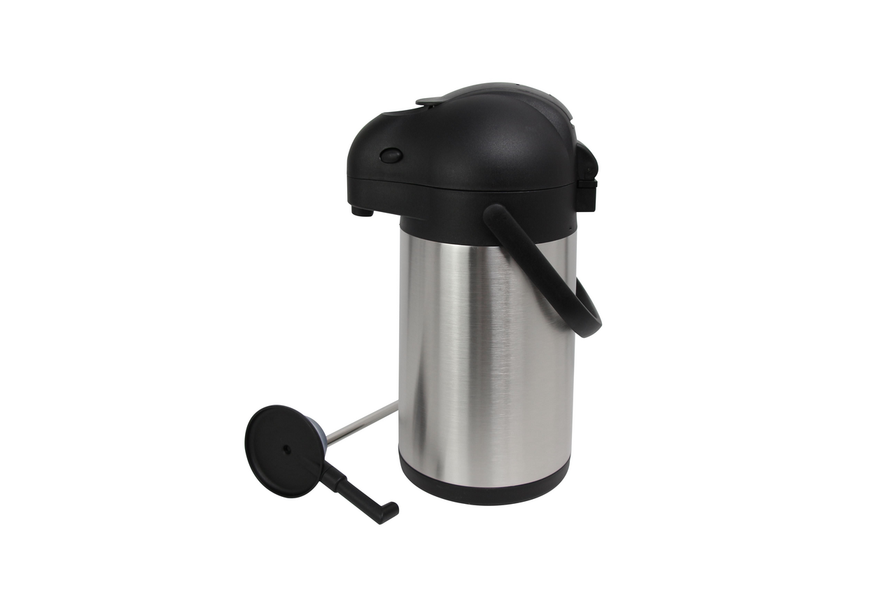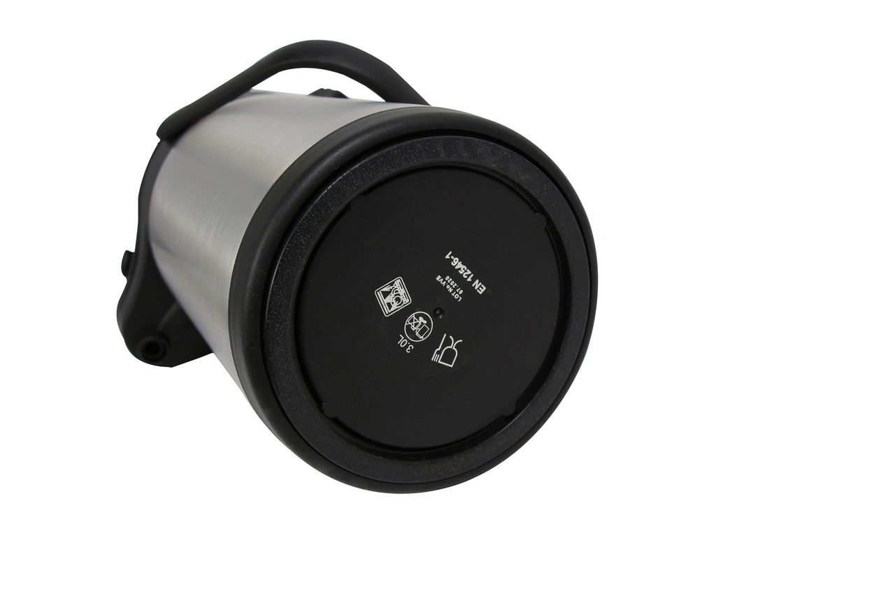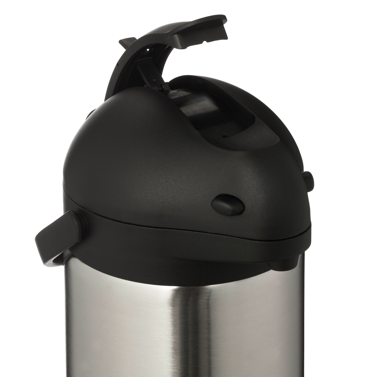 METRO PROFESSIONAL Термос с помпой, 5 л представляет собой бытовое приспособление, которое предназначено для хранения различных напитков при постоянной температуре длительное время. Оно отличается вместительностью и обладает широкой горловиной. Конструкция настолько простая, что может использоваться людьми любого возраста. Крышка легко откручивается и плотно закручивается. Корпус выполнен из надежного, прочного материала высокого качества и окрашен в привлекательный цвет. Такая модель обладает стильным, интересным дизайном, благодаря чему может стать хорошим вариантом подарка для родных и близких. Она оснащена поворачивающимся дном, предохранителем крышки насоса и специальной ручкой для переноса из одного места в другое.