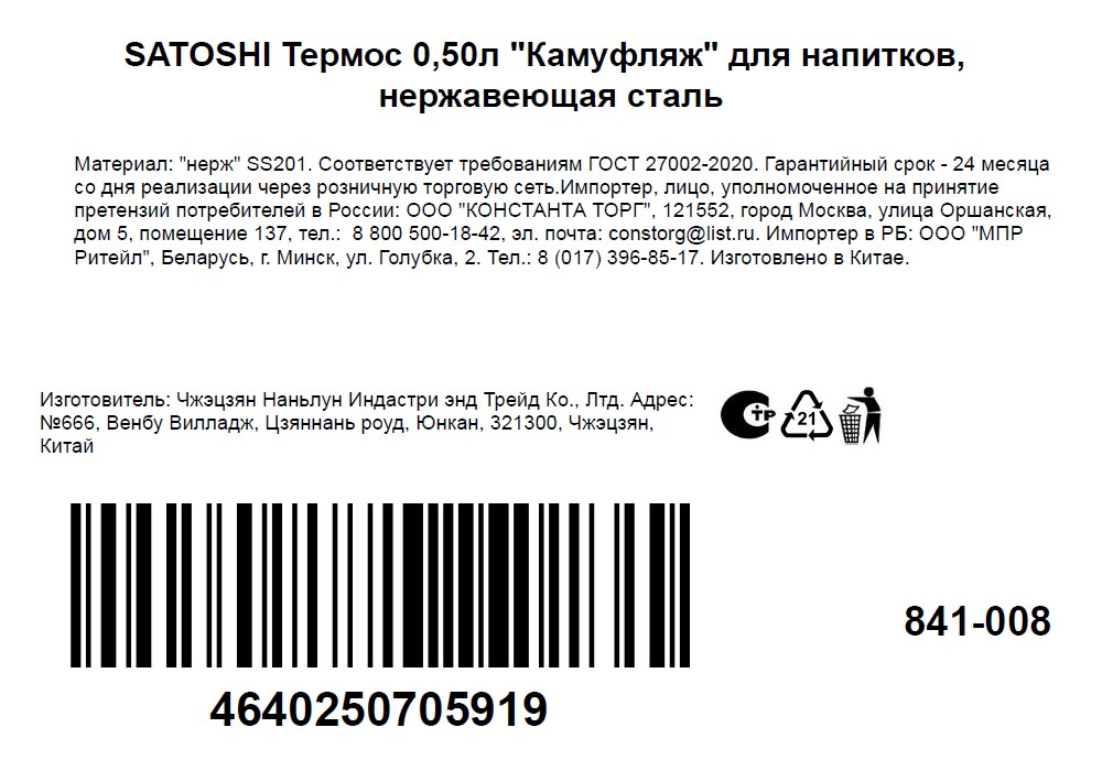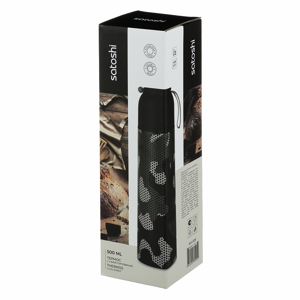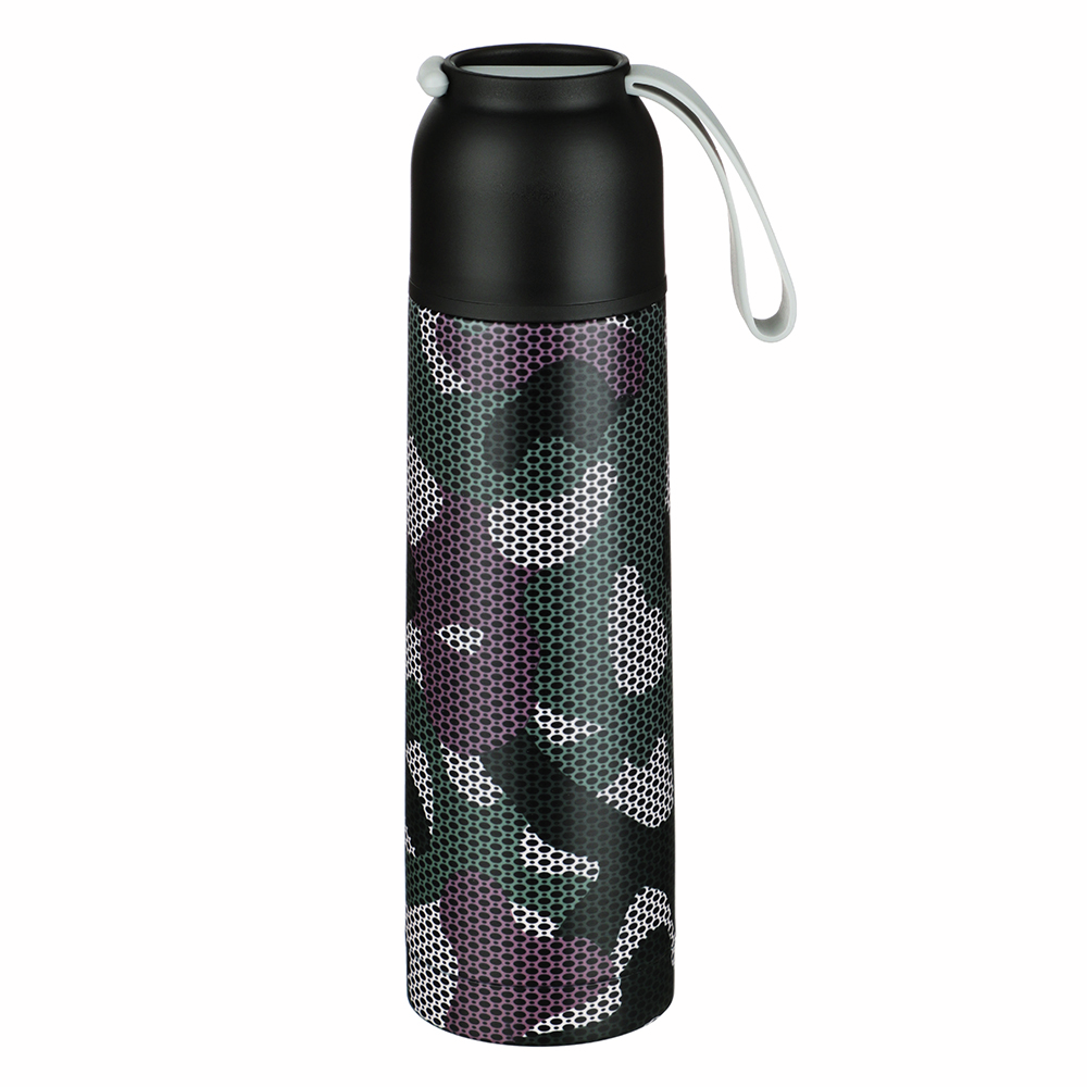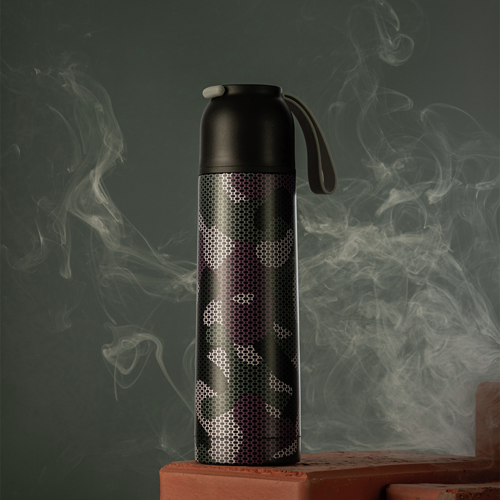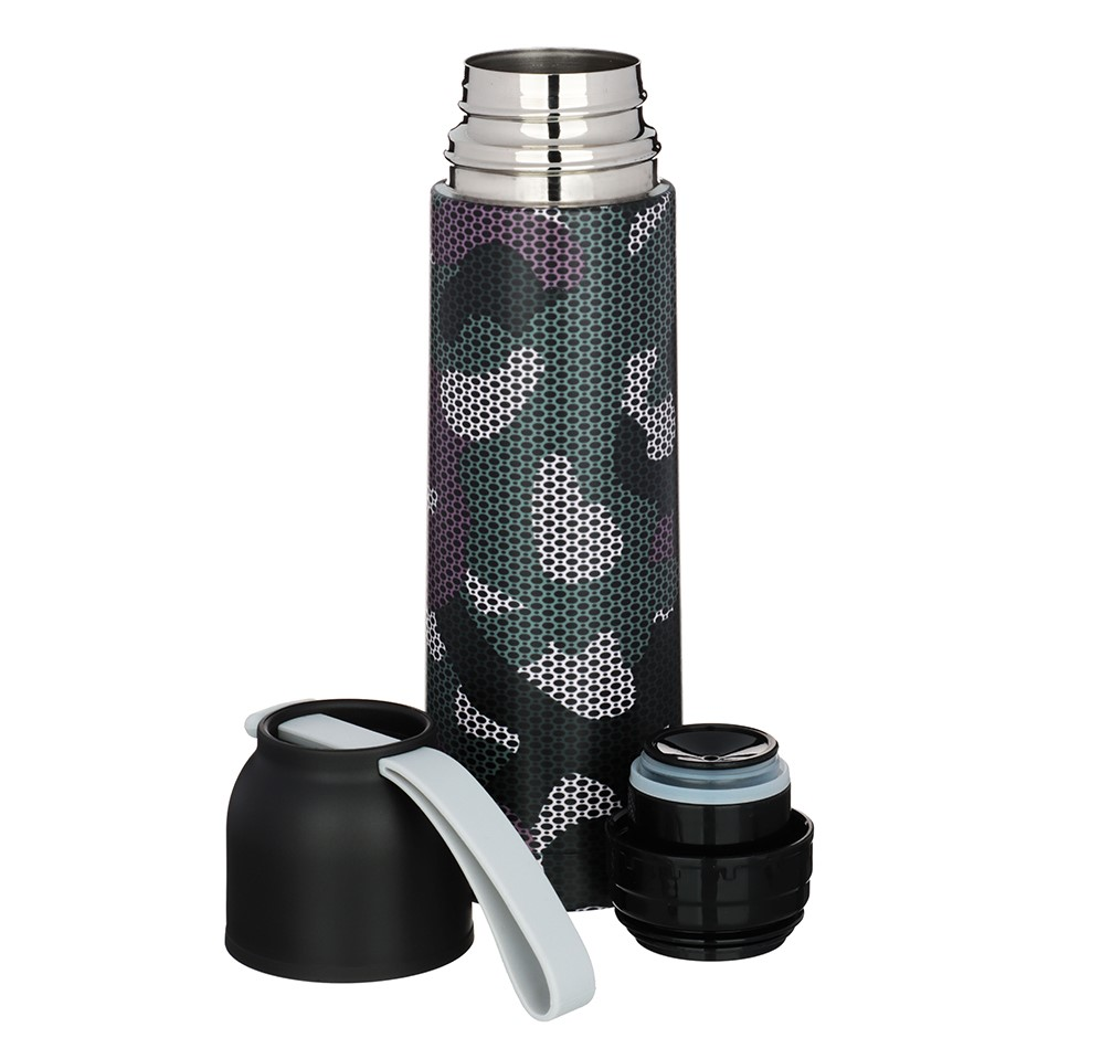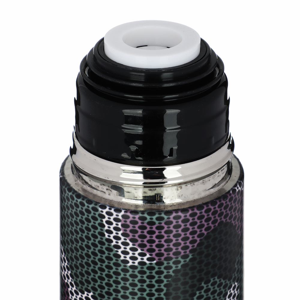 Термос Камуфляж будет сопровождать вас на прогулках и в поездках. Продуманная конструкция, эксклюзивный дизайн и качественные материалы делают процесс использования максимально приятным для пользователя. Термос выполнен из нержавеющей стали и имеет двойные стенки корпуса, что снижает теплопотери и сохраняет температуру напитка в течение нескольких часов в любую погоду. На крышке термоса имеется специальная петля для его удобной переноски. Такой аксессуар удобно использовать на отдыхе, работе и в автомобиле.